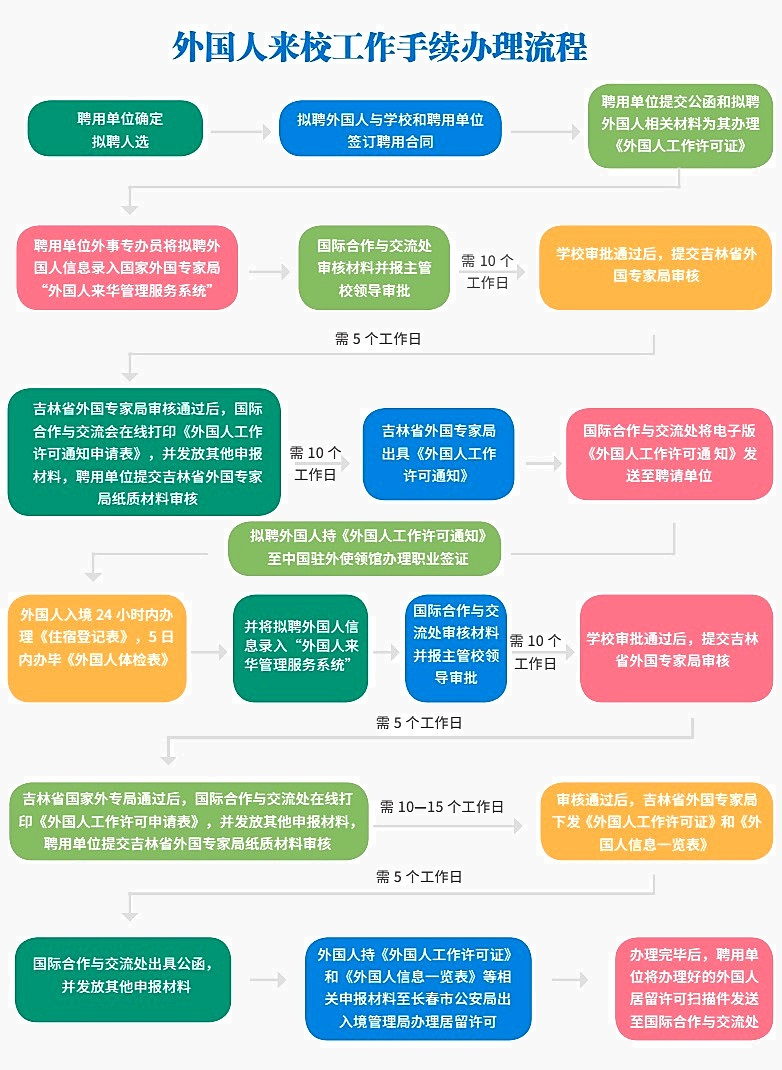 拟聘外国人应在入境前获得《外国人工作许可通知》并办理职业签证(Z字签证),入境后方可办理《外国人工作许可证》和工作类居留证件。办妥居留许可后,职业签证作废,居留许可相当于多次入境签证。