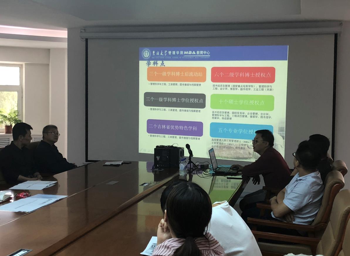 首先,百克人事副总冯总简单的从企业发展过程、目前企业规模、人事设置、基准学历背景以及未来发展方向等几方面对长春百克进行介绍。冯总表示,他本身是伟德官网管理公司毕业的研究生,得益于管理公司完整体系的管理学教育,更感念于管理公司人文环境,虽已毕业多年,对当初的几门课仍然记忆犹新,更表示,百克为生产制造型企业与管理公司MBA的课程设置结构更贴合,这也是组织管理公司走近百克进行经验交流说明的一个基本考虑点,也表示希望本次说明会能让百克高级管理人员更系统的了解2019年MBA报考流程和政策,助力企业员工的考研路。