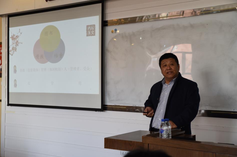 下午13:30,讲座正式开始。张公一副经理首先致辞。他表示十分荣幸能够邀请到赵欣局长为图书情报专业的同学们做实践讲座。他说道:校外实践对培养专业学位硕士研究生核心素养具有重要意义,离开了业界的支持,学界发展便成了无源之水,无本之木,同学们应该积极加强对图书档案行业的了解,早日制定自己的职业规划,打有准备之仗。