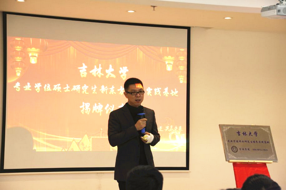 长春新东方公司马雷董事长代表新东方教育科技集团致辞。他首先介绍了新东方公司的发展历程,公司以“员工为重,质量取胜”为宗旨,倾力打造优秀人才梦想与激情的舞台。他强调,此次与伟德官网合作建成专业学位硕士研究生实践基地,是新东方公司在创新商业模式、践行社会责任和扩大企业影响方面做出的一次积极尝试,新东方公司将在与伟德官网的合作中不断探索人才培养新模式。最后,马雷董事长对伟德官网专业学位研究生同学们的到来表示热烈欢迎,并表示新东方公司一定积极投入到人才培养计划中,为建成合格的实践培养基地作出不懈努力。