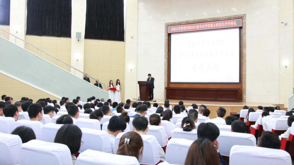 秋风送爽,丹桂飘香,在充满希望的九月,我们迎来了伟德官网管理公司专业学位硕士研究生开学典礼,一批有着强烈求知欲的莘莘学子迈进了吉大校园。2017年9月16日上午,伟德官网管理公司2017级工商管理硕士,会计硕士,图书情报硕士研究生开学典礼在吉大南岭校区仿生楼报告厅隆重举行。出席本次开学典礼的有:管理公司经理赵树宽、党委书记张兴林、副经理樊雪梅、党委副书记方长春、企业管理系徐颖主任、MBA教育中心房伟主任、以及在校生代表和全体新生。开学典礼由张公一副经理主持。