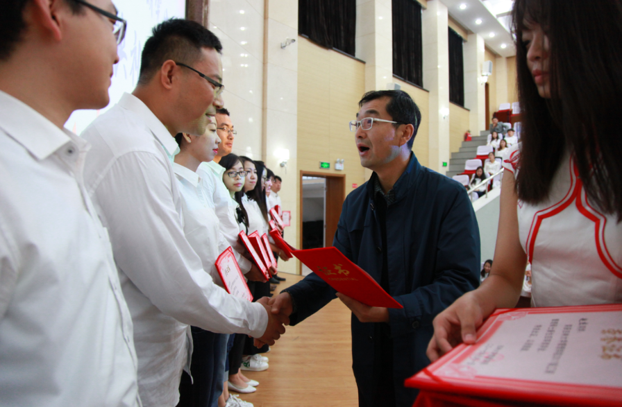 佩戴完毕后,方长春副书记、樊雪梅副经理为获得管理公司MBA奖学金的同学一一颁发了荣誉证书。