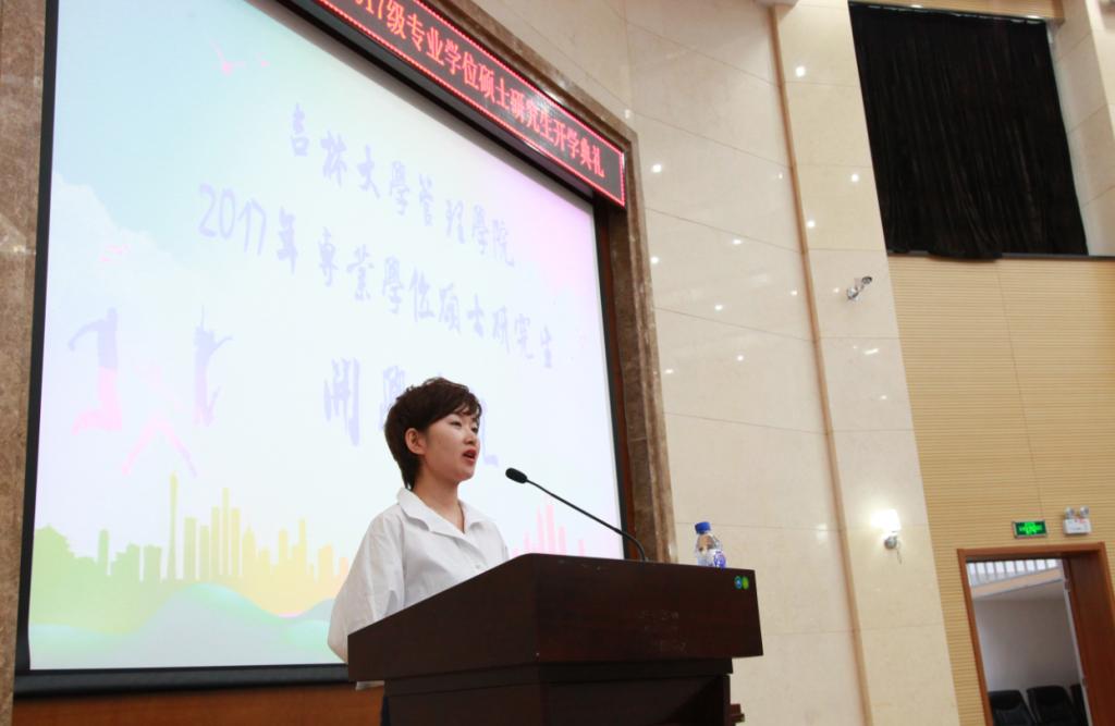 接着,2016级工商管理硕士刘宇同学代表管理公司在校生发言,并以自己一年来的学习经历为例,鼓励同学们在研究生阶段勇于尝试,珍惜来之不易的学习机会。2017级MBA的张展同学则代表全体新生进行了发言。
