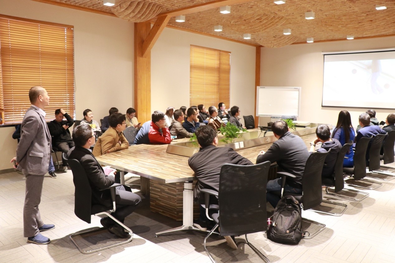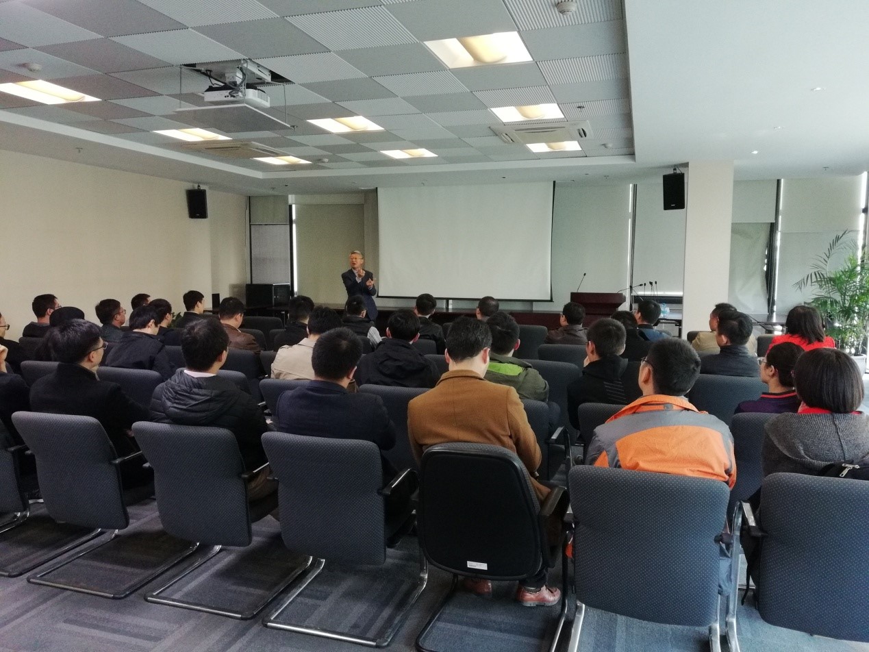 于旭教授在会议室为大家讲解创新与创业相关讲座。