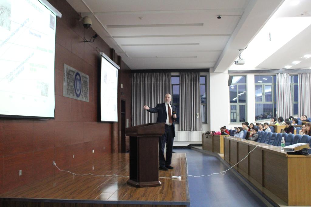 首先由国际交流与合作处刘爽老师对中韩老员工创业创意马拉松大赛项目进行介绍,当刘爽老师展示去年参加该项目的同学们参赛及获奖视频时,在场的许多同学对这项极富挑战性和趣味性的比赛项目表现出浓厚的兴趣。随后,来自牛津大学的Dr. John Hoffmire教授为同学们做了一场主题为“Disruptive Innovation”的精彩讲座。Dr. John Hoffmire幽默的演讲风格和互动式的授课方式赢得了在场同学们的阵阵掌声。接下来Michael老师为大家介绍了本次为管理公司员工量身定制的英国剑桥及美国常春藤暑期课程项目,同学们被历史悠久的国际知名学府深深吸引。最后,公司李苗老师对赴香港参加亚洲未来领袖精英训练营的项目进行了详尽介绍,鼓励有志于创业的同学们把握此次与青年杰出企业家近距离接触与交流的机会。