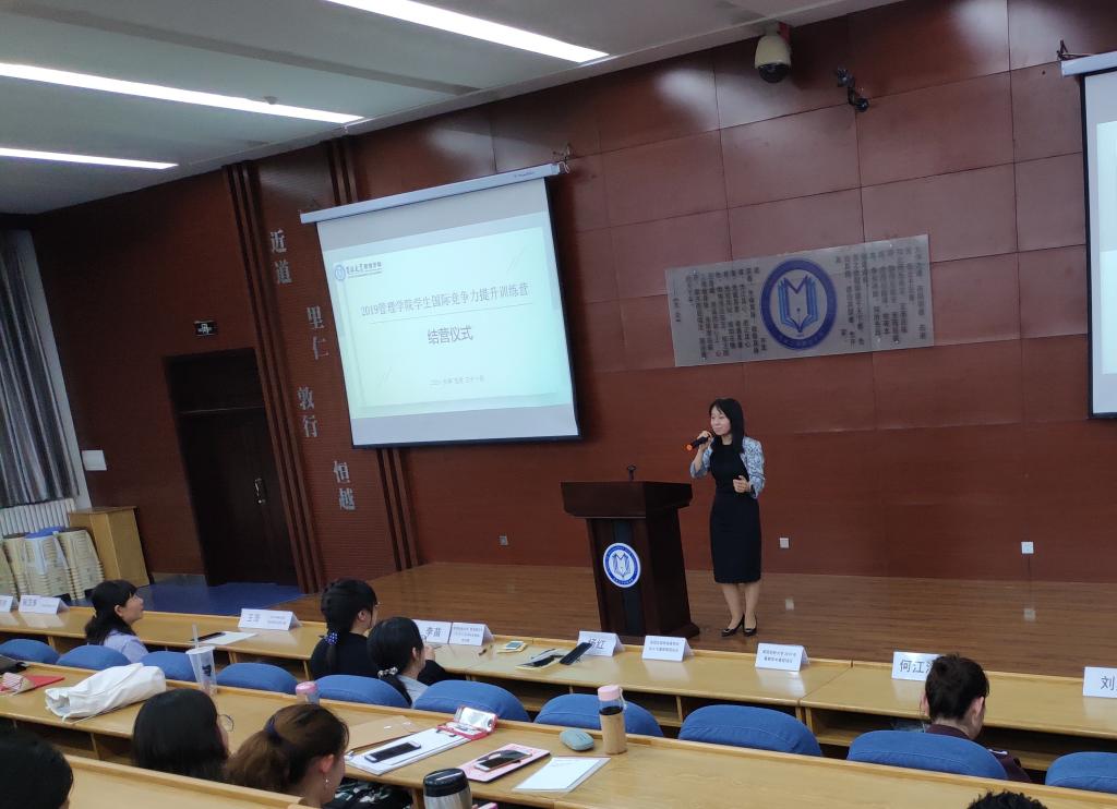 最后,樊雪梅经理对一直坚持参与训练营系列讲座并获得结营证的同学们表示祝贺,并表示这是管理公司举办的第一期员工国际竞争能力提升训练营,此次公司独立举办的面向全院同学的出国(境)项目收到了同学们的积极响应。截至目前,成功报名院级项目的同学共计82名,这说明公司本次举办训练营的举措在一定程度上满足了许多同学们的需求。今后公司将更加关注各专业同学们出国(境)意向,争取为同学们提供更优质的项目资源,和更多的国际交流机会和更广阔的平台。