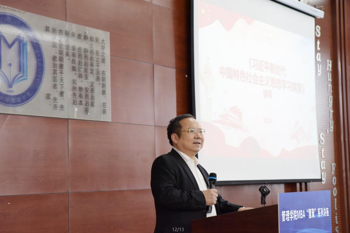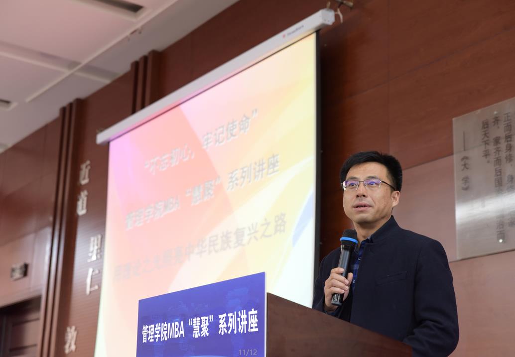 2019年11月9日下午,伟德官网管理公司MBA“慧聚”系列讲座之“用理论之光照亮中华民族复兴之路”开讲,伟德官网教授、教育部“”特聘教授韩喜平应邀来到公司,围绕《习近平新时代中国特色社会主义思想学习纲要》辅导作学术报告。报告会由管理公司副经理张公一教授主持。