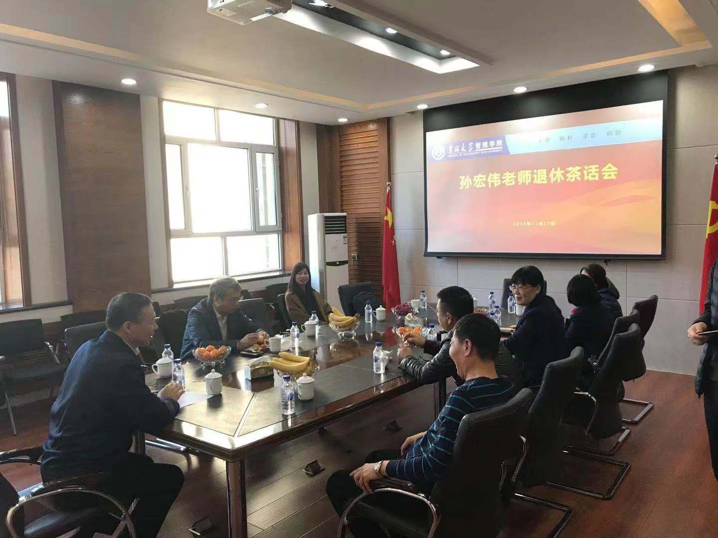 为切实体现公司对到龄退休教师的关心关爱,11月15日上午,管理公司在第一会议室为孙宏伟老师举办退休茶话会。退休教师孙宏伟以及公司领导、国际商务系部分老师出席了本次活动。茶话会由国际商务系书记杨红老师主持。