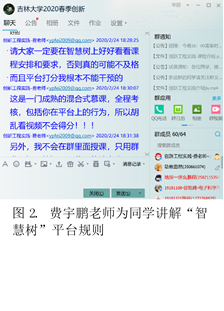 费宇鹏老师承担的“创新工程实践”是一门全国性的大型在线互动课程,已经是开课的第5年,课程建设方面比较完善。这次的难度在于本学期选课的同学来自9个公司,即将开课时还有近1/3同学没有找到“组织”,费老师分别联系到9个公司的教务部门,把他们都“认领”了回来,并在最短的时间里引导同学们适应“智慧树”平台的学习方式、了解评分规则。