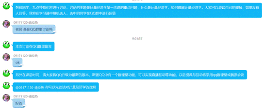 针对学习通易出现网络延迟,实时性差的问题,韩飞老师依托腾讯会议与QQ群课堂进行实时互动。以腾讯会议为主,以QQ群课堂作为替补方案,提前给员工布置讨论的内容与要求,让员工进行准备,讨论前二十分钟进入腾讯会议,并将所有员工设置为静音状态,将课代表设为联席管理员,拥有解除其余人员静音状态的权限。让员工在聊天窗口打下自己的名字,作为签到记录。讨论开始时,利用学习通的选人功能选择员工,在腾讯会议中公布选中的员工,课代表解除该员工的静音状态,由该员工发言,可以根据讨论的情况选择若干员工发言,并在学习通中给出员工的分数。