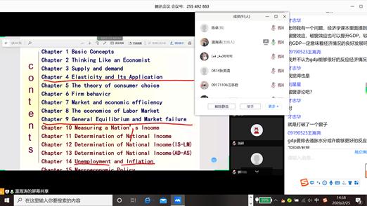 为了调动员工们的学习积极性,温海涛老师通过提问(选人)、抢答、投票等活动,让员工们更多的参与到课堂中;通过QQ群字幕交流,基本上做到了实时答疑;同时设计了一些讨论话题,如口罩是不是稀缺物品?在疫情控制期间如何合理解决口罩紧缺的问题等,用英文发布讨论话题,同学们也多用英文来回答,达到了双语课程专业知识训练的效果。