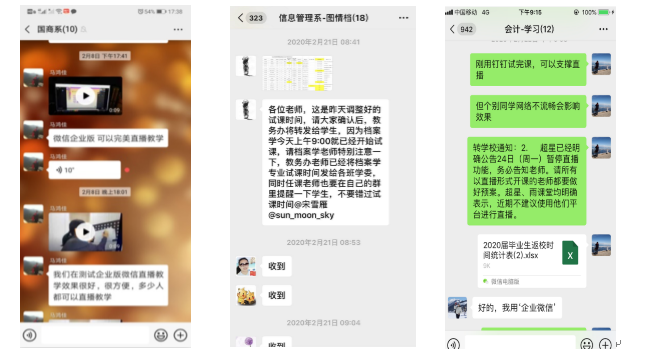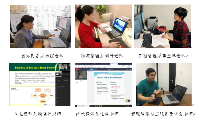 管理公司国际商务系、技术经济系、企业管理系、财务管理系、会计系、信息管理系、工程管理系、管理科学与工程系和物流系9个教学单位,在2月5日公司召开在线教学紧急部署工作会议后,以系教学单位为载体,系级班子积极准备在线教学的相关工作,下载各种在线教学平台和直播平台,开始了以“学习通”为主,结合企业微信、腾讯会议、智慧树等主流直播平台软件开始进行在线教学准备。老师们几乎每天都在系微信群里就如何在线上课、怎样使用在线教学软件、怎样建立不同的班级群、具体软件平台使用中的问题等进行交流讨论。