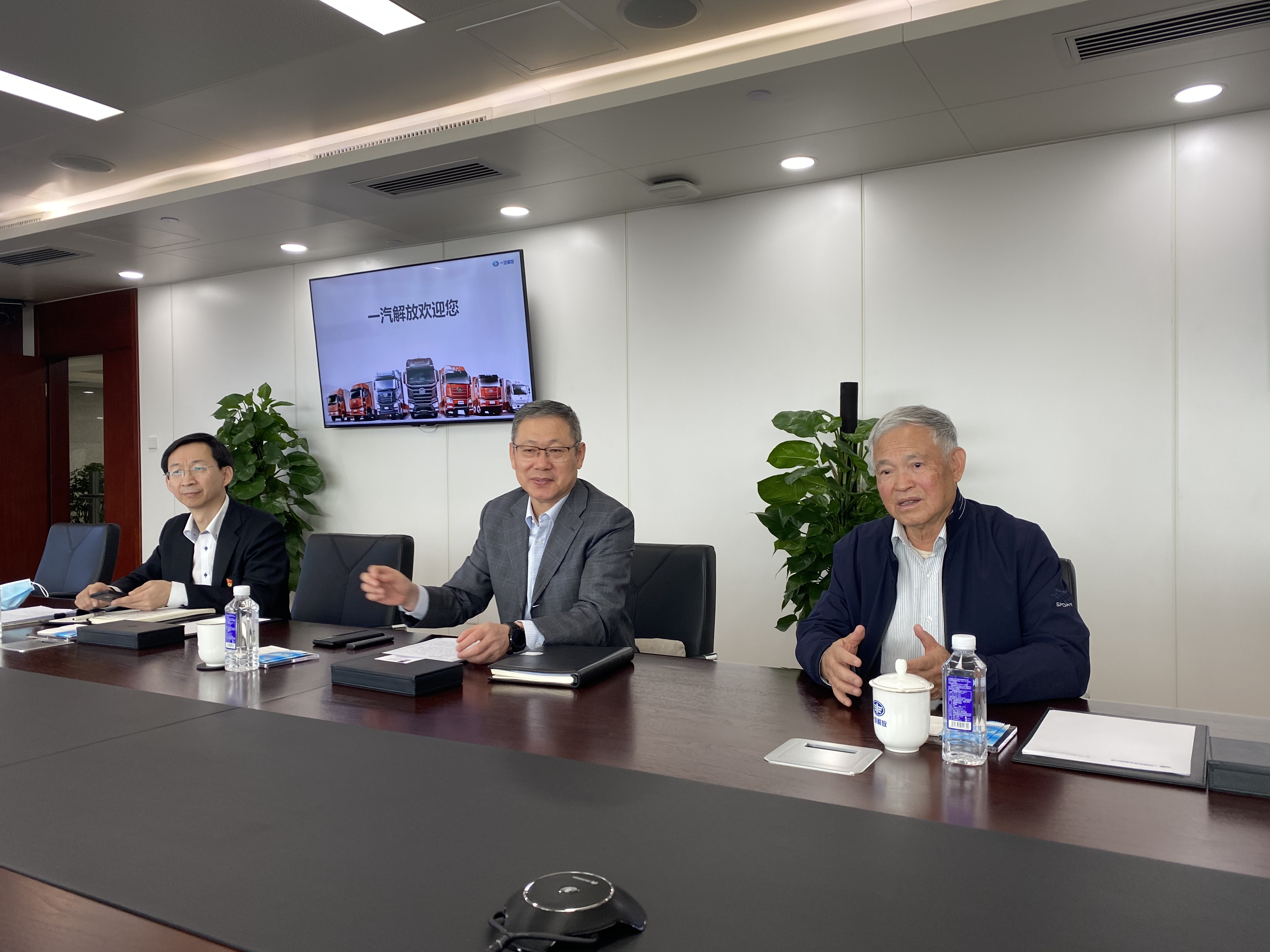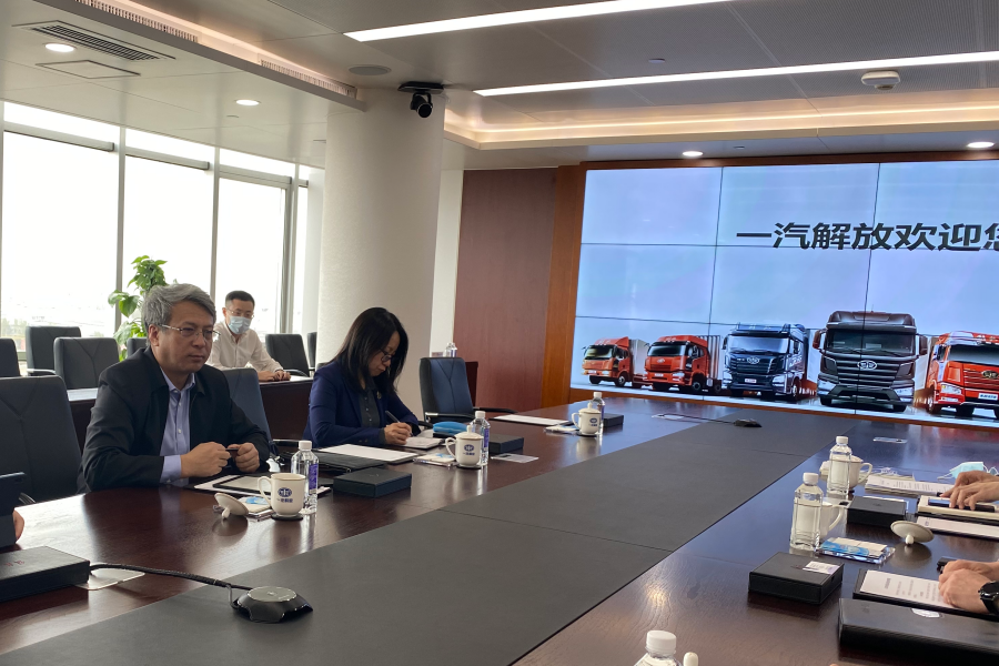 走访时胡汉杰董事长介绍说:一汽解放集团股份有限公司作为新中国历史最长的汽车企业,有着厚重的国企色彩。对于朝着2025年战略愿景大步前进的中国一汽来说,红旗是魂,一汽解放是根,只有它的强力支撑,大胆突破,中国一汽的裂变才会更有力量。当前,以智能化、电动化为标志的技术变革中,一汽解放在传统与未来之间找到改革的平衡,“一是技术创新,二是管理变革,创新与变革是驱动企业不断前进的动能,也是实现‘中国第一,世界一流’的抓手。”对于发展目标,胡汉杰清晰而笃定,企业实现国际化,商业上更成功。气势如虹的一汽解放正推动着披坚执锐的中国一汽,用高质量的发展成为更勇猛的尖兵。