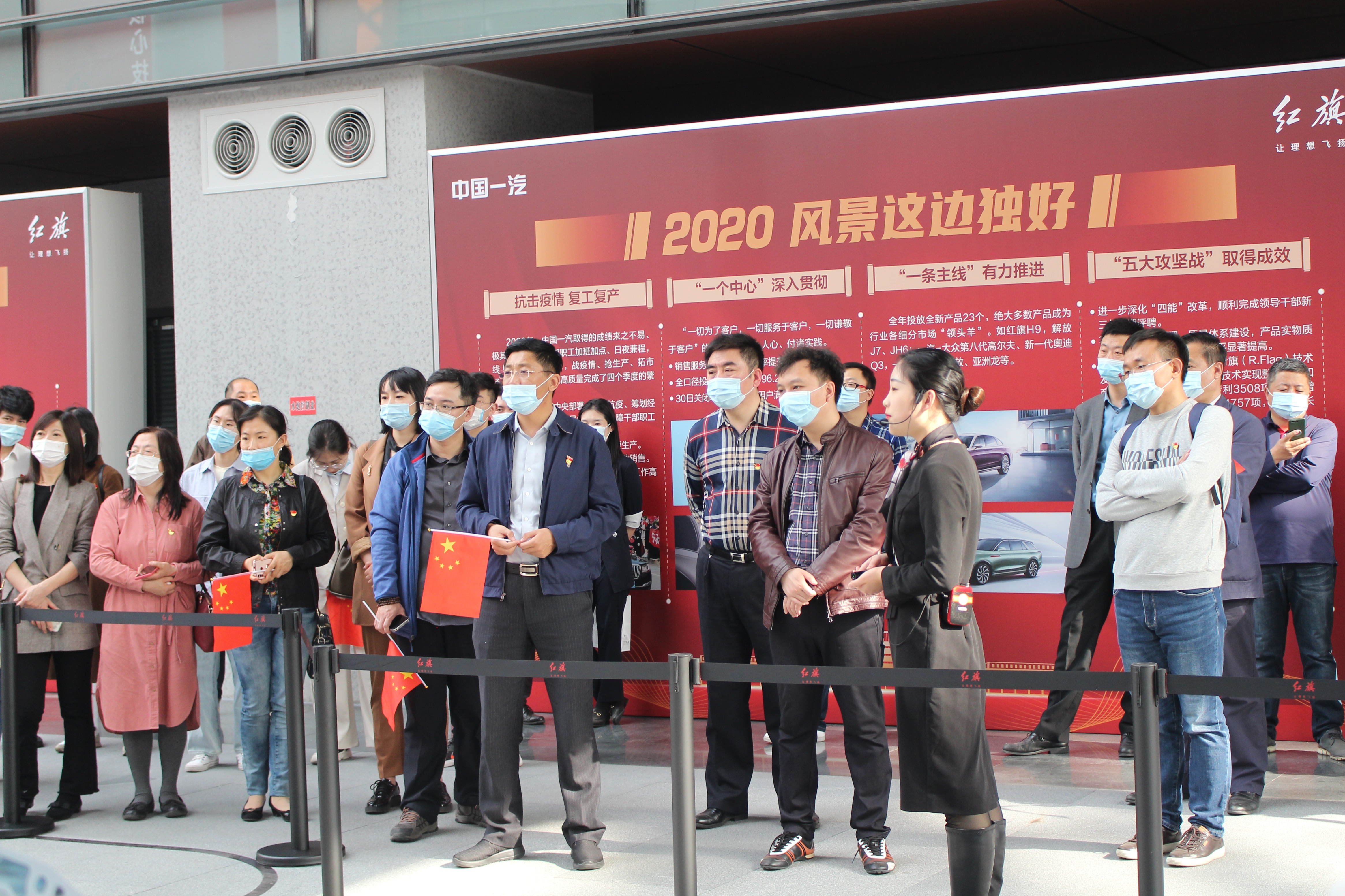 2021年4月21日下午,管理公司党委党史学习教育暨庆祝建党百年系列活动在一汽红旗拉开序幕,本次活动以“红旗车旁学党史,重走习近平总书记考察一汽路线”为主题,通过实地走、亲身看、现场听的方式,追寻红色印记,见证百年党史。管理公司领导班子成员、党委委员、纪委委员、各科室主任、教工党员、员工 党员代表参加本次活动。