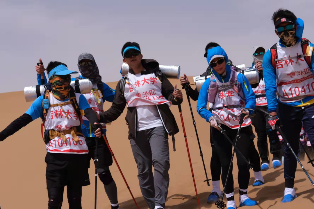 今年的腾格里沙漠天气条件相对恶劣,赛场风力一度达到七级以上,风卷狂沙,夐不见人。队伍行进中不但要克服各种崎岖地形,顶着狂风烈日,还要面对30度以上的早晚温差。本次队伍大部分由首次参赛的新队员组成,但队员们战斗意志坚定,为母校获取沙鸥的决心。在三天70公里的长途奔袭中,面对着伤病、失温等各种意外情况,没有一人掉队,终于全员完赛,为本次出征画上了一个圆满的句号。