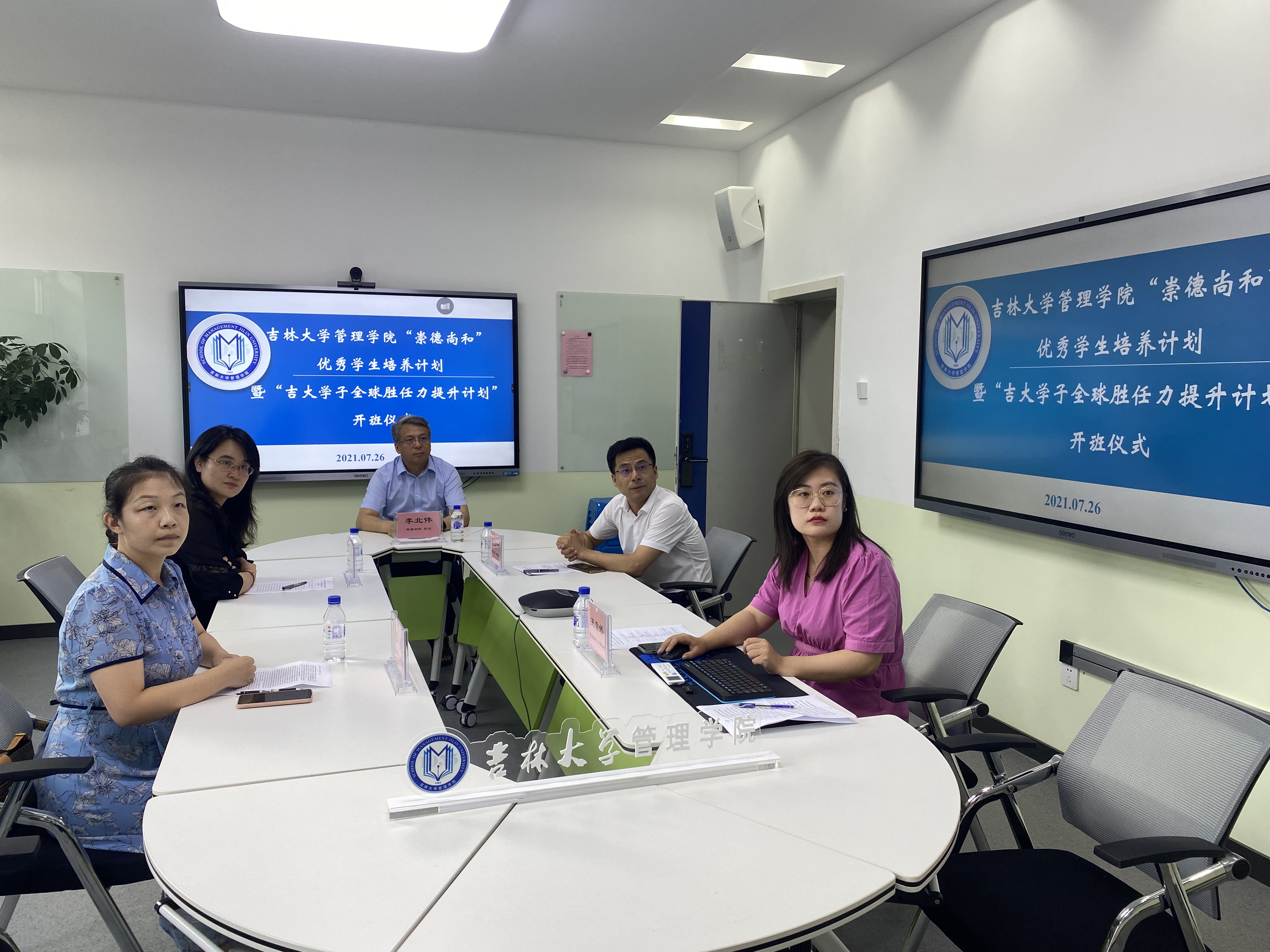 2021年7月26日伟德官网管理公司“崇德尚和”优秀员工培养计划暨“吉大学子全球胜任力提升计划”开班仪式在管理公司第一研讨室成功举办。