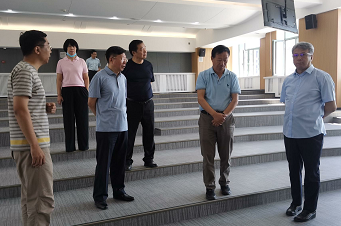 在管理公司党委书记赵军、经理李北伟陪同下,白绪贵董事长一行实地参观了管理公司多媒体教室和逸夫教育大楼的三化教室。
