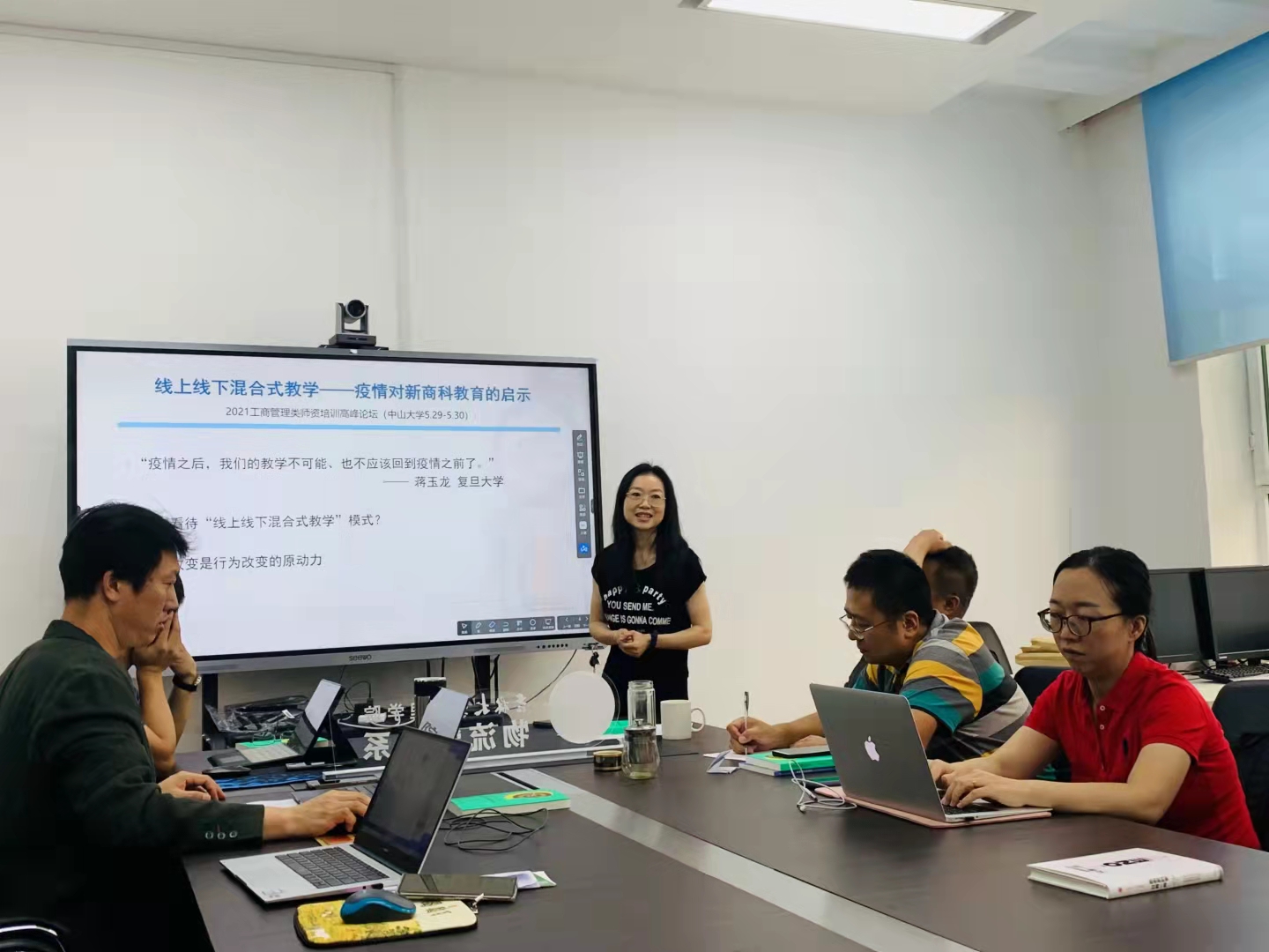 分享环节,王杏老师就此前参加的“线上线下混合式教学——疫情对新商科人才培养的启示”培训进行了汇报交流。以“疫情之后,我们的教学不可能、也不应该回到疫情之前了。”开篇(引自复旦大学蒋玉龙教授),王杏老师分享了席酉民(西交利物浦大学执行董事长)、张新民(对外经贸大学原副董事长)、魏江(浙江大学管理公司经理)、王重鸣(浙江大学人文资深教授)等专家的培训。分享起到了抛砖引玉的作用,老师们深切感受到:每一位教学名师,都具有深厚的科研功底。紧接着,陈金涛、王春、赵中华、刘丹等多位老师一一发表了自己的看法,大家就认知转变、科研难点、科研氛围、教学改革等展开了热烈的讨论。大家坚信,只要有恒心,无论是科研还是教学成果,不断努力,一定会有收获。