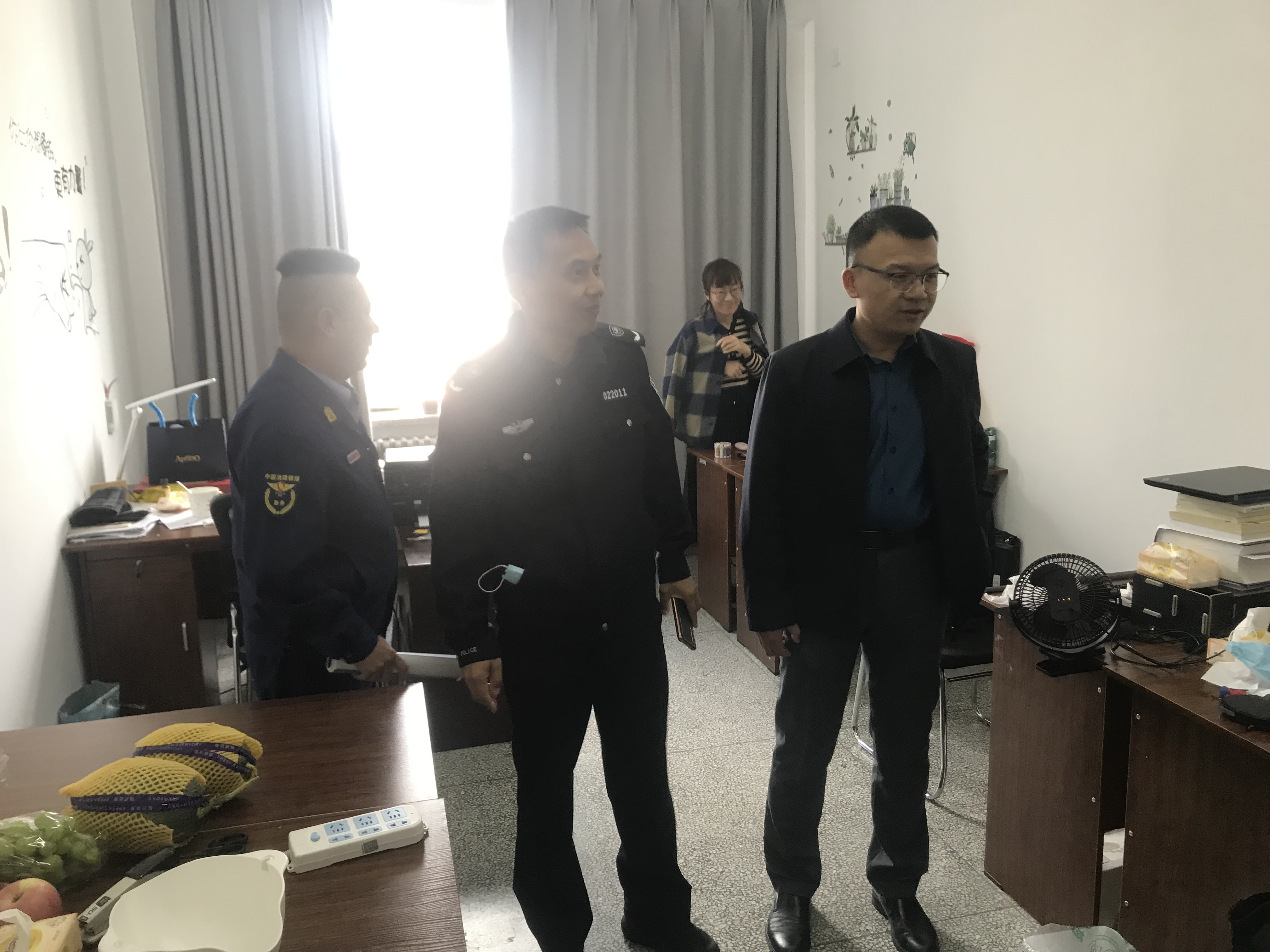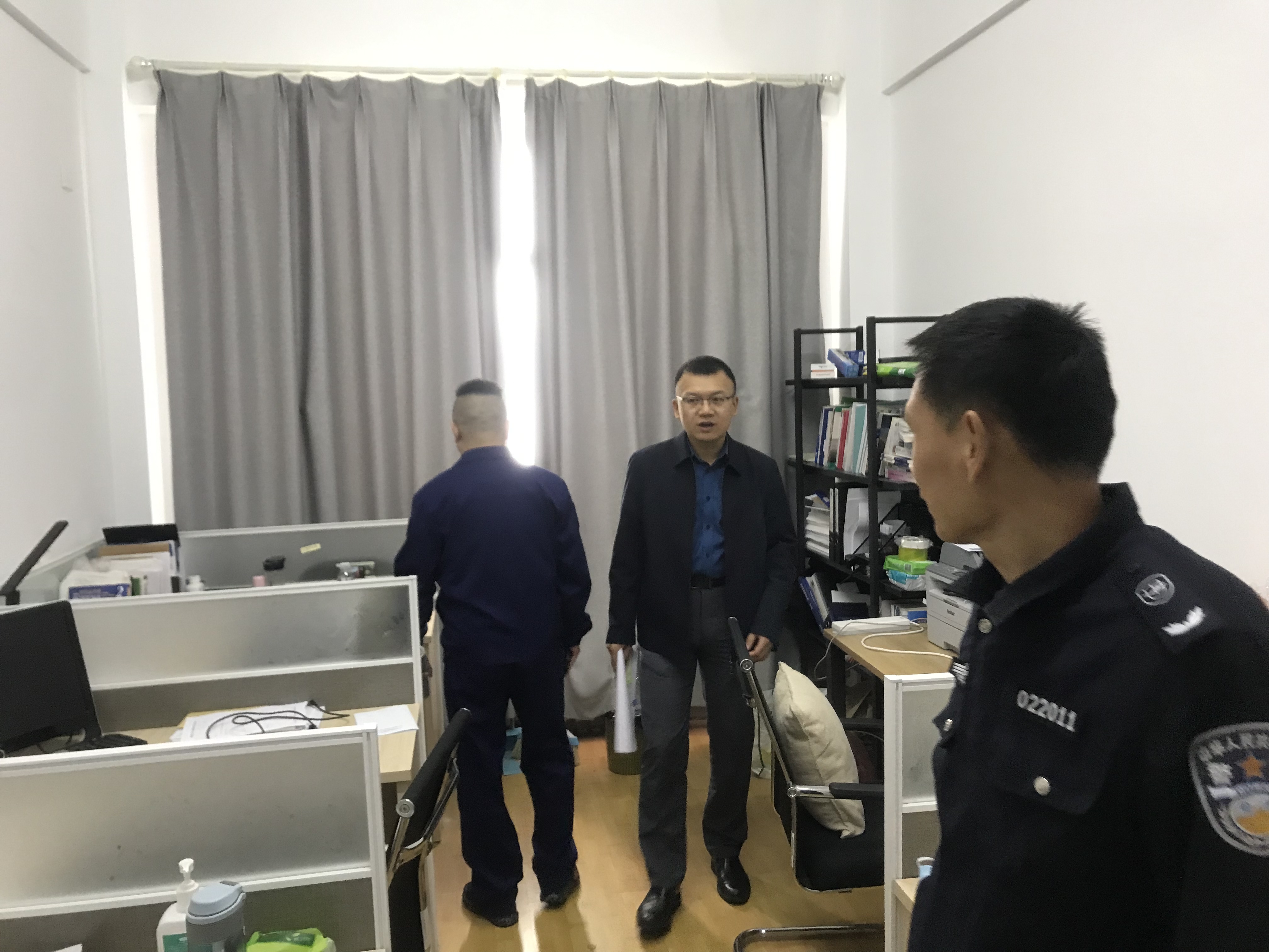 联合检查组查看了管理公司在继教楼、管理楼、逸夫楼、创客的办公用房,重点检查消防通道是否堵塞、消防器材是否齐备、是否乱接电线电路、是否违章使用电器等问题。