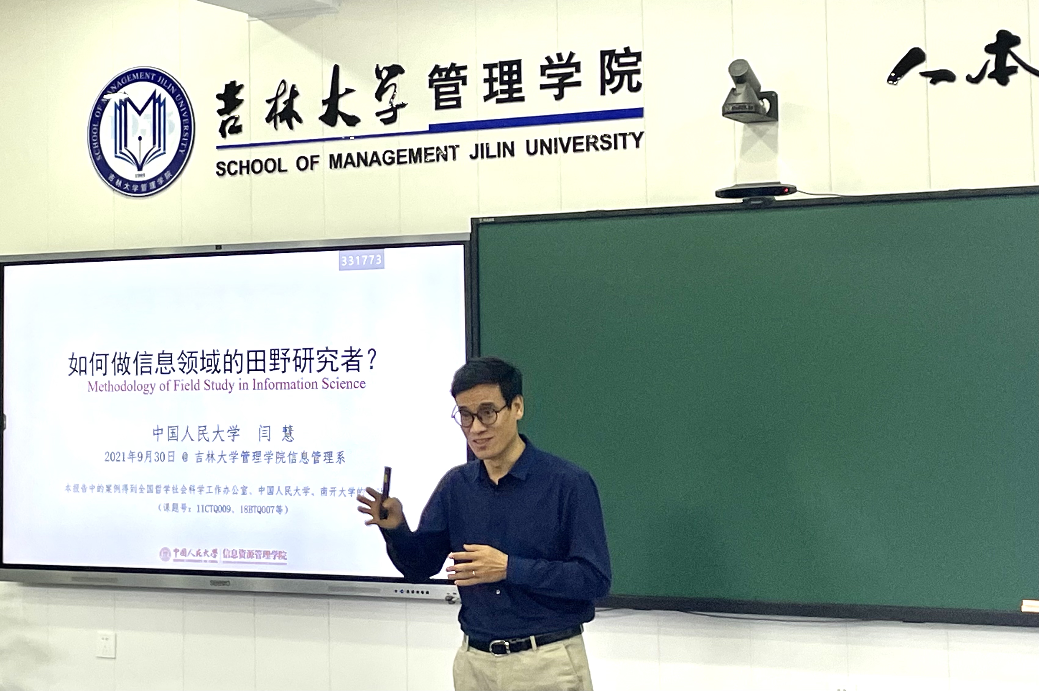 9月30日上午,由伟德官网“情报学+”研究生学科交叉融合学术交流中心发起的“前沿学术专题讲堂”系列活动首场活动,在管理公司213教室成功举办。本次活动由管理公司信息管理系张卫东教授主持,邀请中国人民大学信息资源管理公司副经理、博士生导师闫慧教授作了题为“如何做信息领域的田野研究者?”的学术报告。