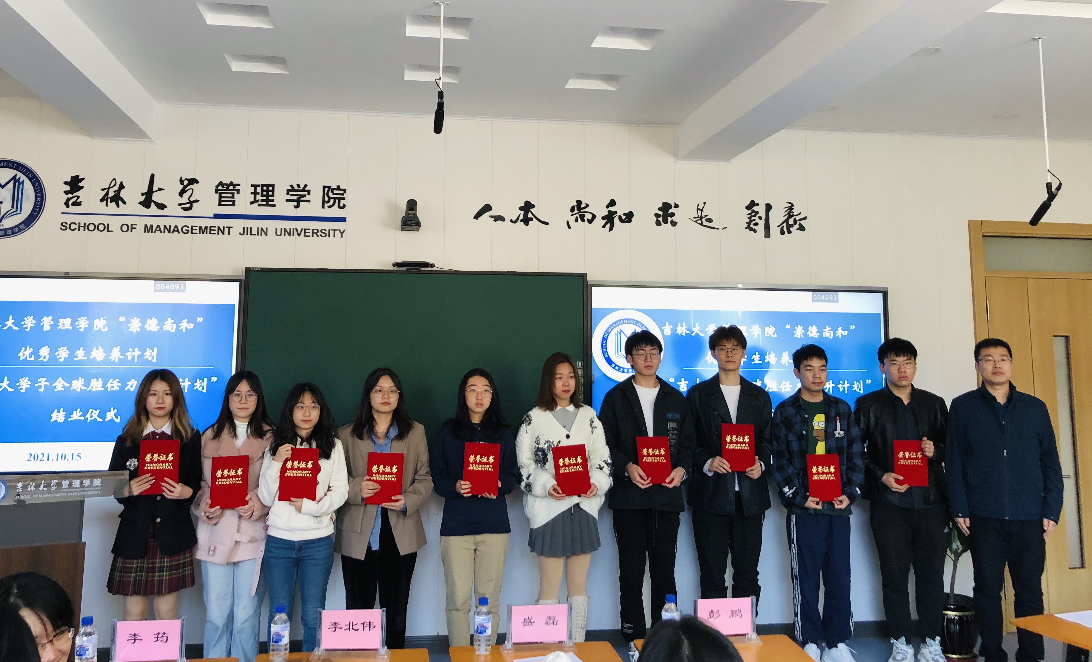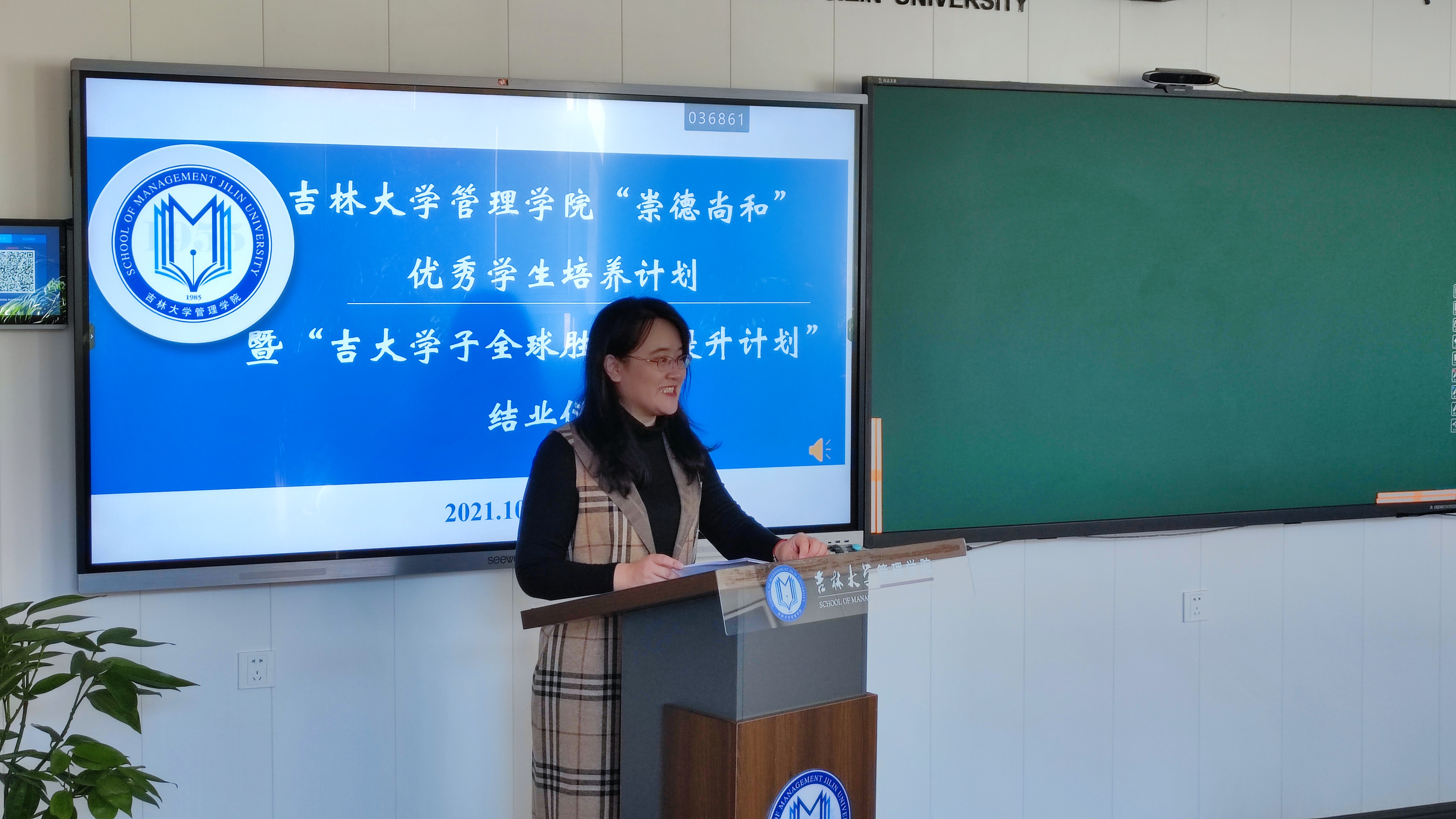 仪式最后,管理公司副经理张公一对本次项目进行了简短的总结,并对25名同学在项目中的优异表现进行了充分的肯定,他表示本次项目的实施受到了国际合作与交流处、学工部及管理公司老师的大力支持,最后圆满结束并取得了丰硕的成果,未来公司会继续为全院师生提供更多优质的国际合作项目及交流平台。最后,管理公司副经理张公一宣布伟德官网管理公司“崇德尚和”优秀员工培养计划暨“吉大学子全球胜任力提升计划” 圆满结束!