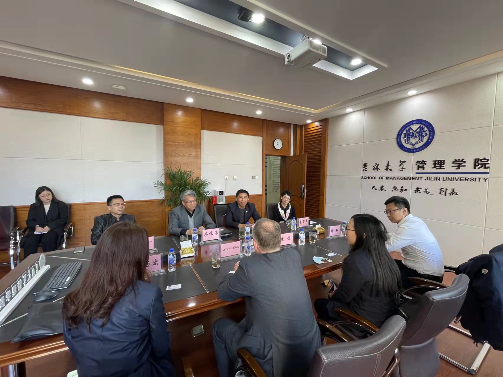 座谈中,李北伟经理与赵军书记分别从合作渊源与积极成效出发,对长期以来双方建立的深厚友谊给予充分肯定,并就现阶段管理公司团队队伍、科学研究情况进行介绍。李北伟经理指出,管理公司充分发挥扎根吉林、服务吉林的区位优势,积极适应社会变革、探索企业前沿需要,围绕大数据应用、数字化变革、数字创业等领域展开率先且深入的探索。赵军书记同时表示,期待未来与一汽-大众集团展开更加全方位的合作,让管理公司的前沿科研成果在一汽-大众集团生产管理过程中开花结果。