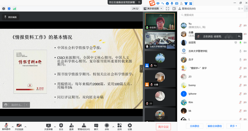 为使师生更深入地了解学术期刊的具体选稿用稿准则与规范,11月19日上午,中国人民大学书报资料中心社会编辑部主任,《情报资料工作》杂志副主编徐亚男教授应邀为公司师生做《学术期刊的选稿标准与用稿规范—兼谈图情档学术热点》的学术报告。线上线下共100余名教师和员工聆听了报告。