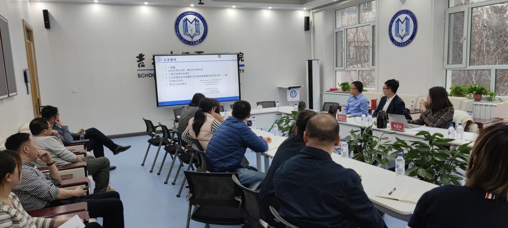 为进一步提升公司机关工作人员的综合素质和履职能力,12月10日,管理公司邀请董事长办公室高恒飞、张玉珠两位老师,与公司机关全体工作人员一起就公文写作与处理进行交流,交流会由行政副经理马腾主持。