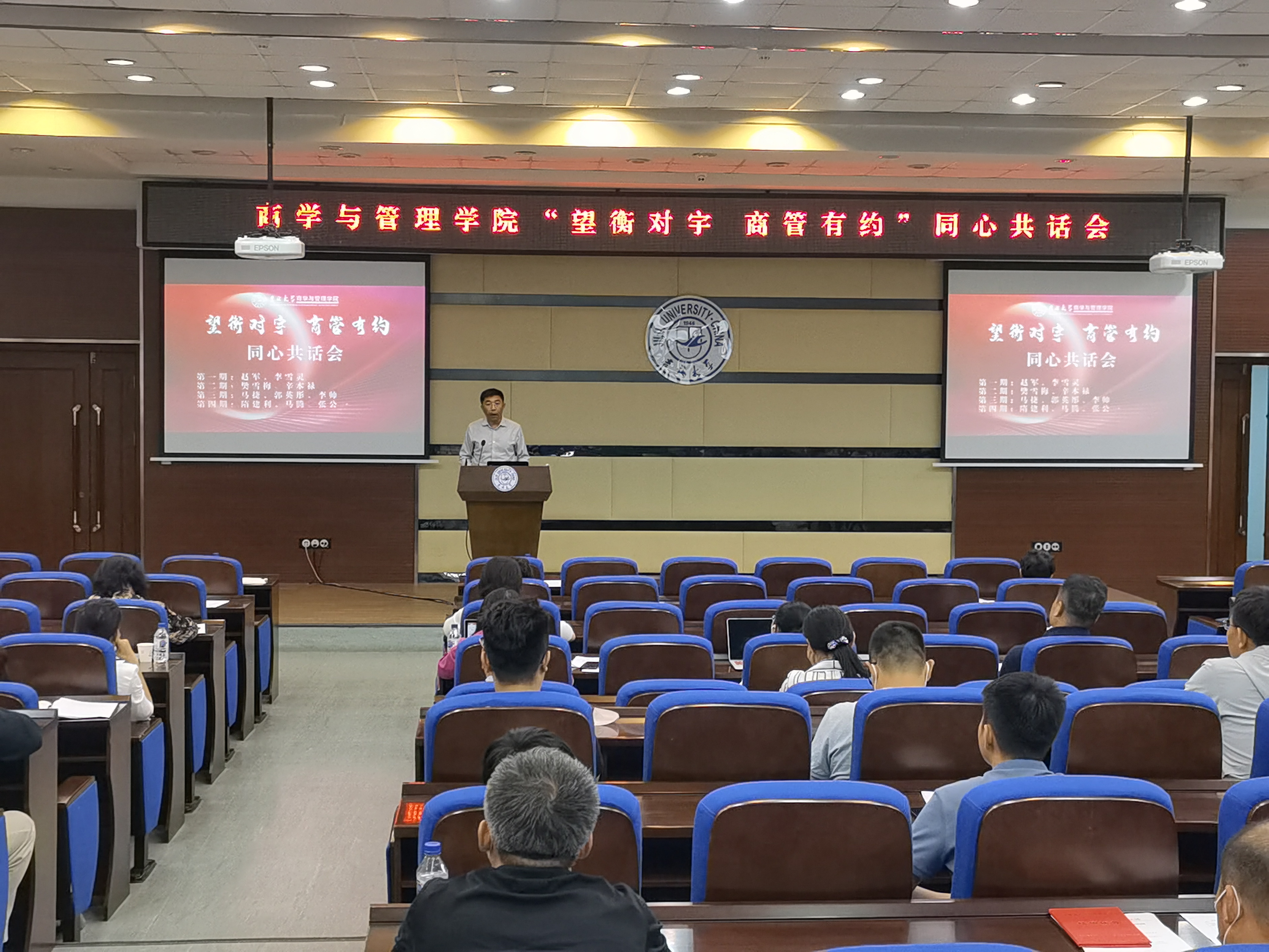 公司首轮拟举办四期“望衡对宇,商管有约”同心共话会,希望这个平台能够成为商管公司全体成员凝心聚力的“粘合剂”、赋能增权的“助推剂”、坚定信念的“强心剂”,实现全院各级组织一体把握、全局统筹、协同推进、联动发展,为公司事业发展汇聚强大动力。
