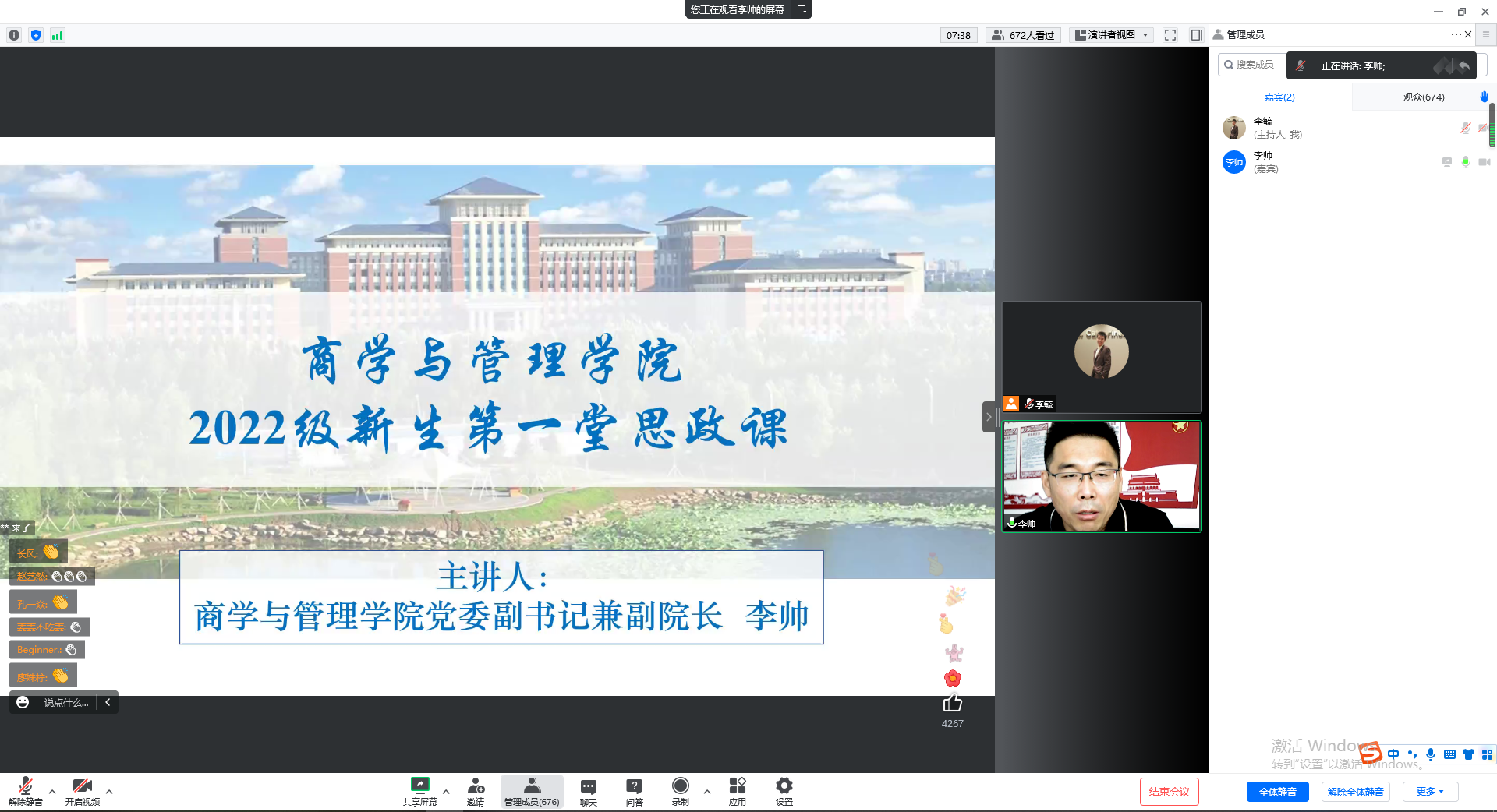 为做好2022级新生入学后的思想政治引领工作,2022年8月30日上午9:30,公司开展了新生第一堂思政课。思政课由商学与管理公司党委副书记兼副经理李帅老师主讲。按照疫情防控要求,全体2022级新生线上参加。