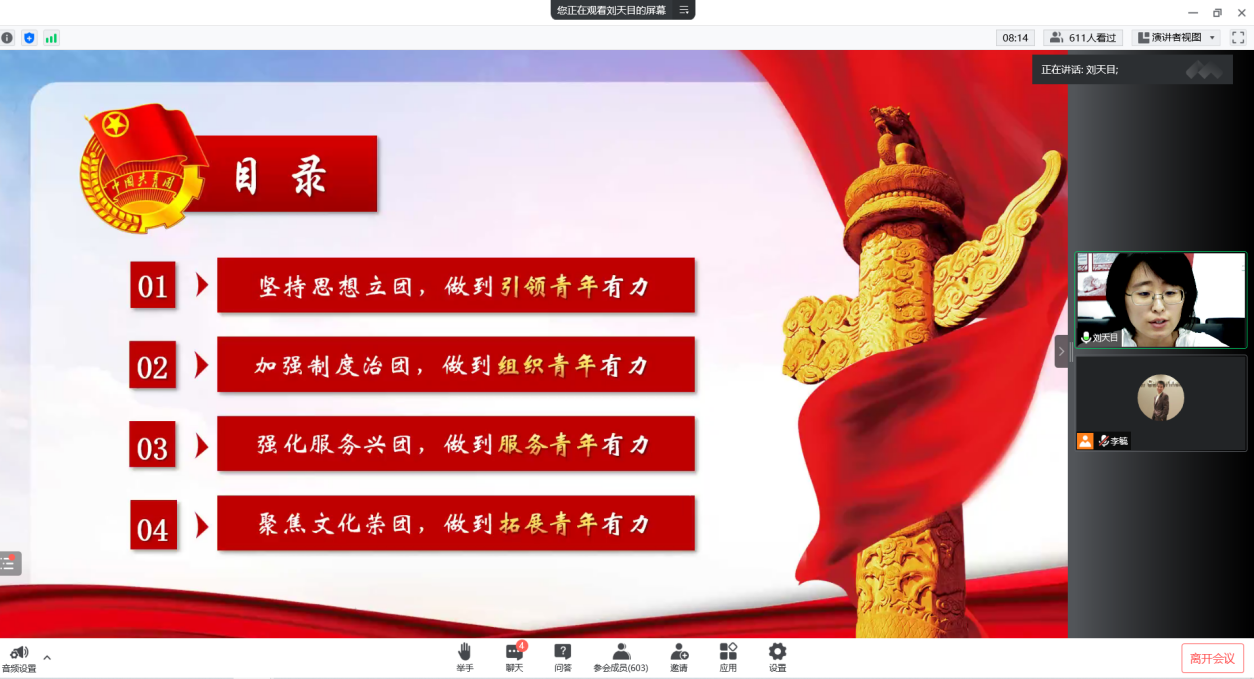 为加强2022级新生的共青团团员意识,深化共青团情怀,增进对党和团的认识,伟德官网团委书记刘天目老师于2022年8月30日通过腾讯会议为2022级新生举办了“以青春之名,续写时代华章”的线上主题团课活动。