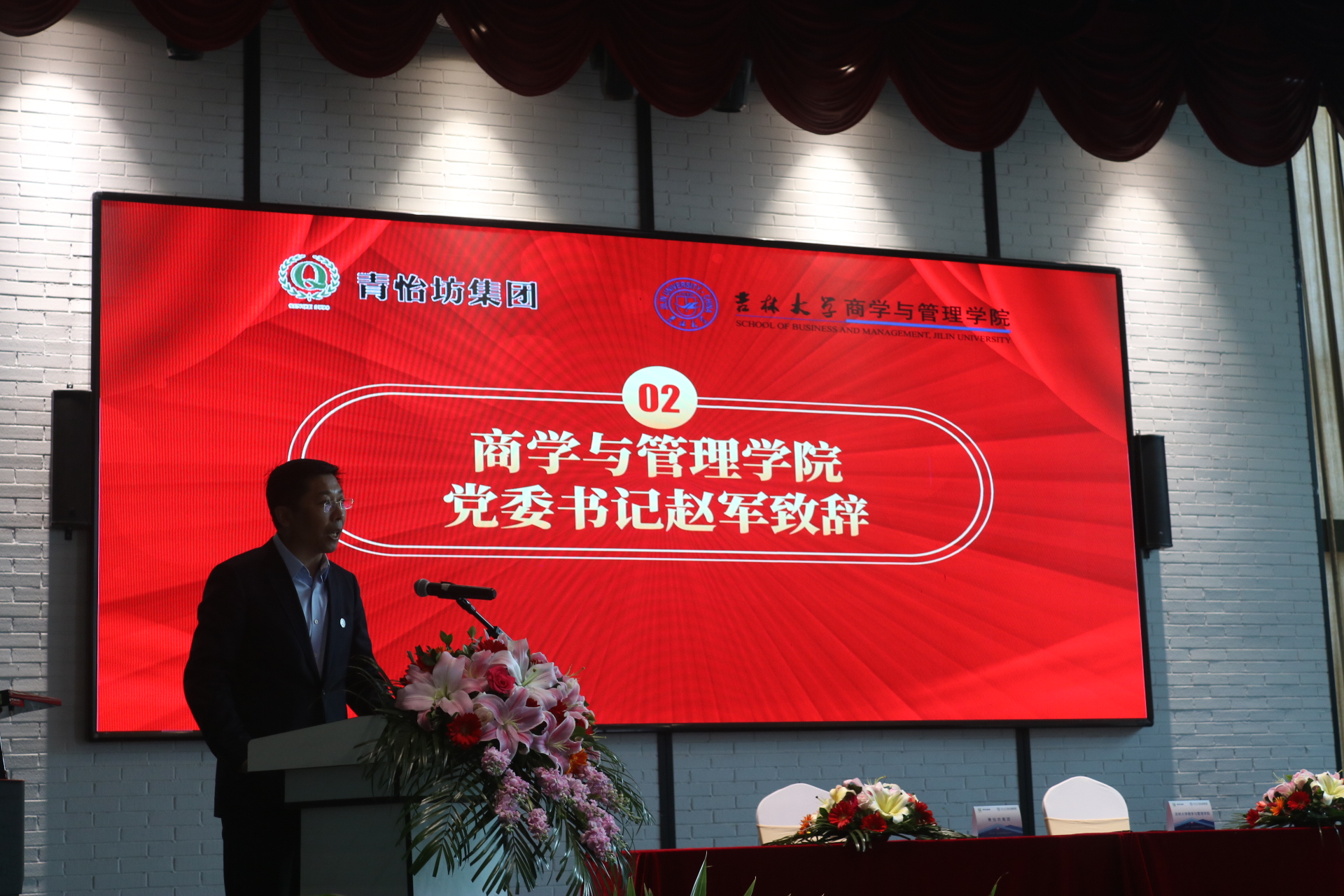 赵军在致辞中向青怡坊集团对公司发展的关心和支持表示感谢。他提到,实践育人工作是全面落实党的教育方针,把社会主义核心价值体系贯穿于国民教育全过程,深入实施素质教育,大力提高高等教育质量的必然要求。此次双方合作共建实习实践基地是加强联系、增进友谊的良好机会,希望借此机会进一步丰富实践育人协同体系,推动专业实践与社会实践的有机融合,拓展院企合作模式,释放院企合作优势,取得更多创新成果。