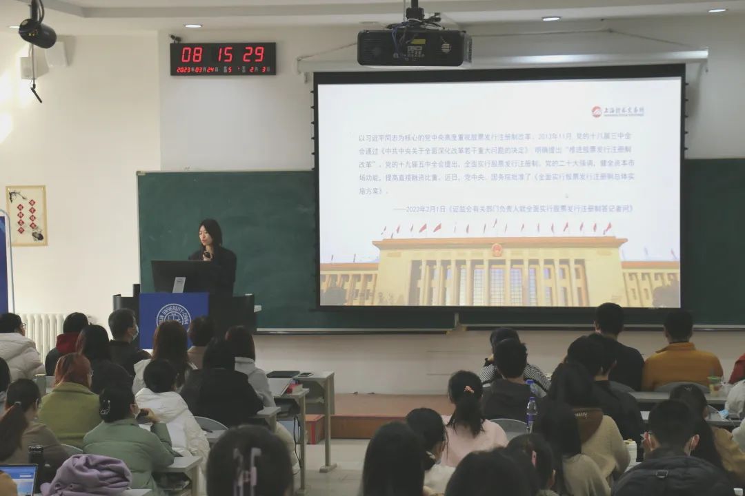 “拥抱注册制,共享高质量”本次应用金融系本科生实践教学活动就全面注册制与资本市场高质量发展进行了探讨。相信通过本次讲座的交流,应用金融系员工的能够更加了解注册制,对用好注册制,赋能未来高质量发展有更深刻的认识。