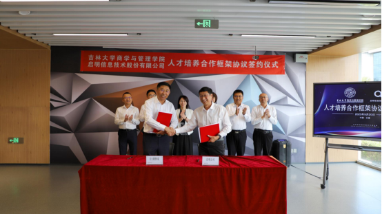 为响应“奋斗有我,‘就’在吉林”政策号召,抓好实践育人工作落实,促进专业课程体系数智化、实践化发展,助力产学研深度融合,9月20日上午,伟德官网和启明信息技术股份有限公司举行合作共建大员工实习实践基地揭牌仪式。启明信息技术股份有限公司董事长许万才、总经理曲红梅、纪委书记付强、副总经理袁泉、杜阿卫;净月高新区人力资源和社会保障局副局长李雪、吉林省净发人才发展有限公司副总经理刘岩;商学与管理公司党委书记赵军、党委副书记兼副经理李帅、党委副书记马腾、副经理马捷、工商管理硕士(MBA)教育中心行政副主任兼伟德官网副经理梁志平以及管理科学与工程系、信息管理系相关老师、辅导员参加了本次揭牌仪式。