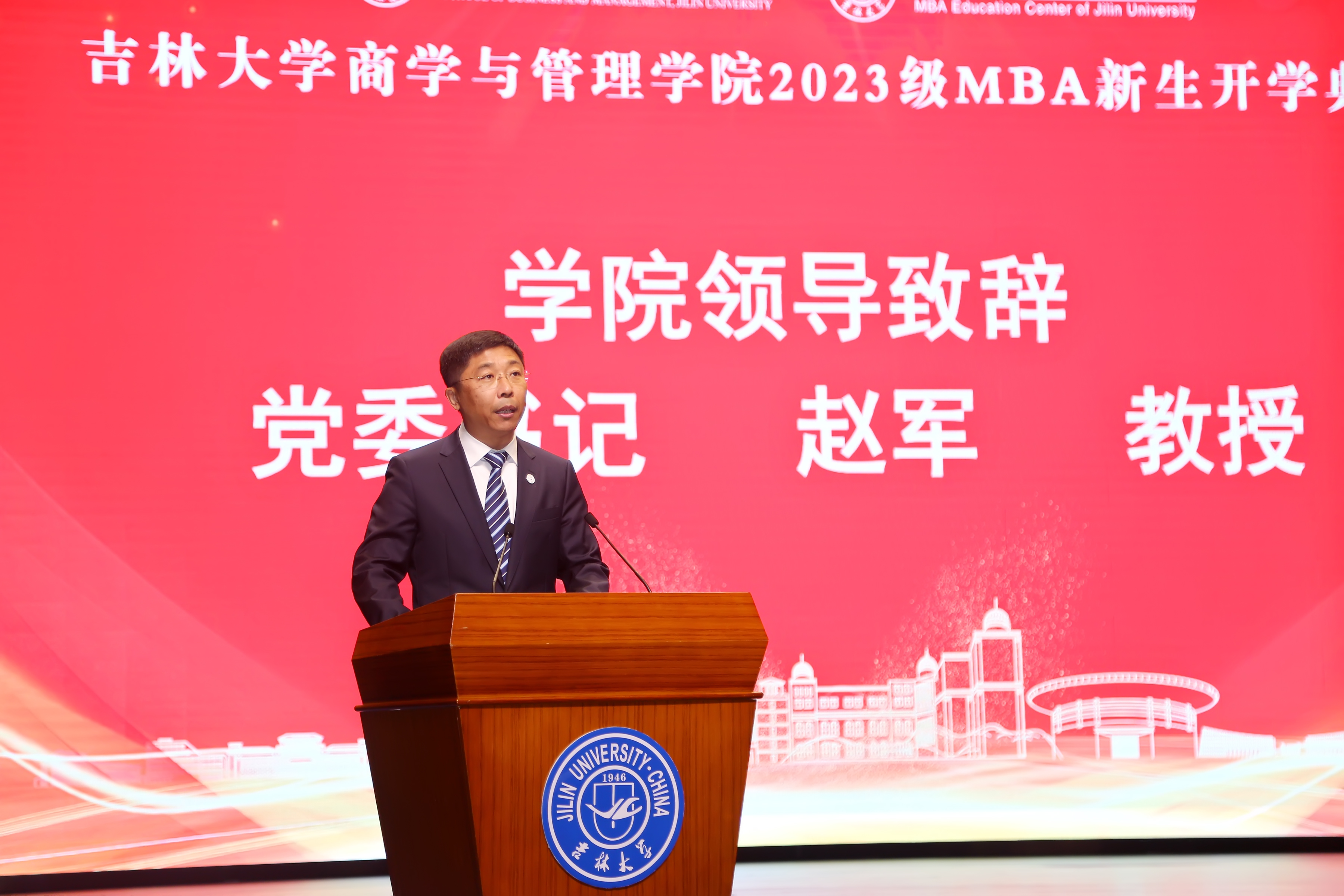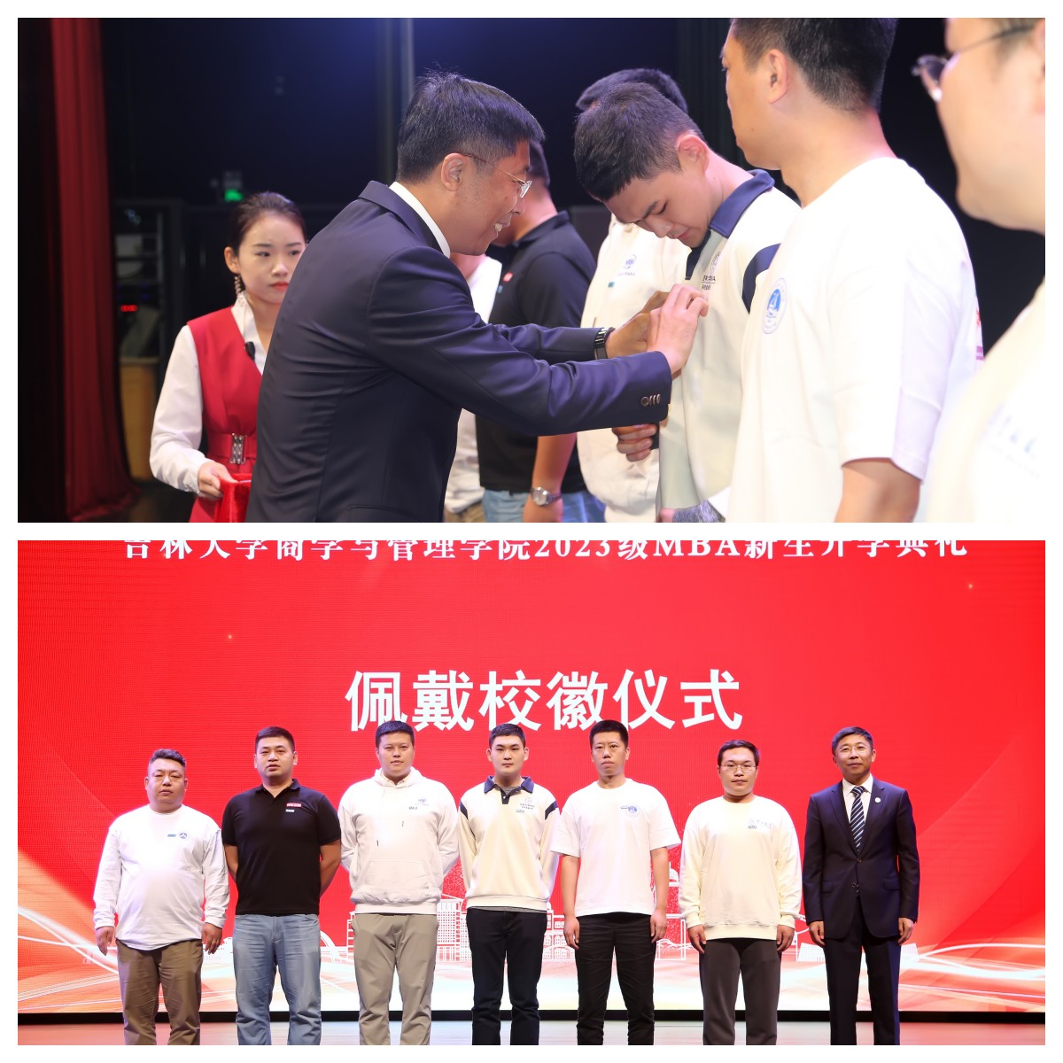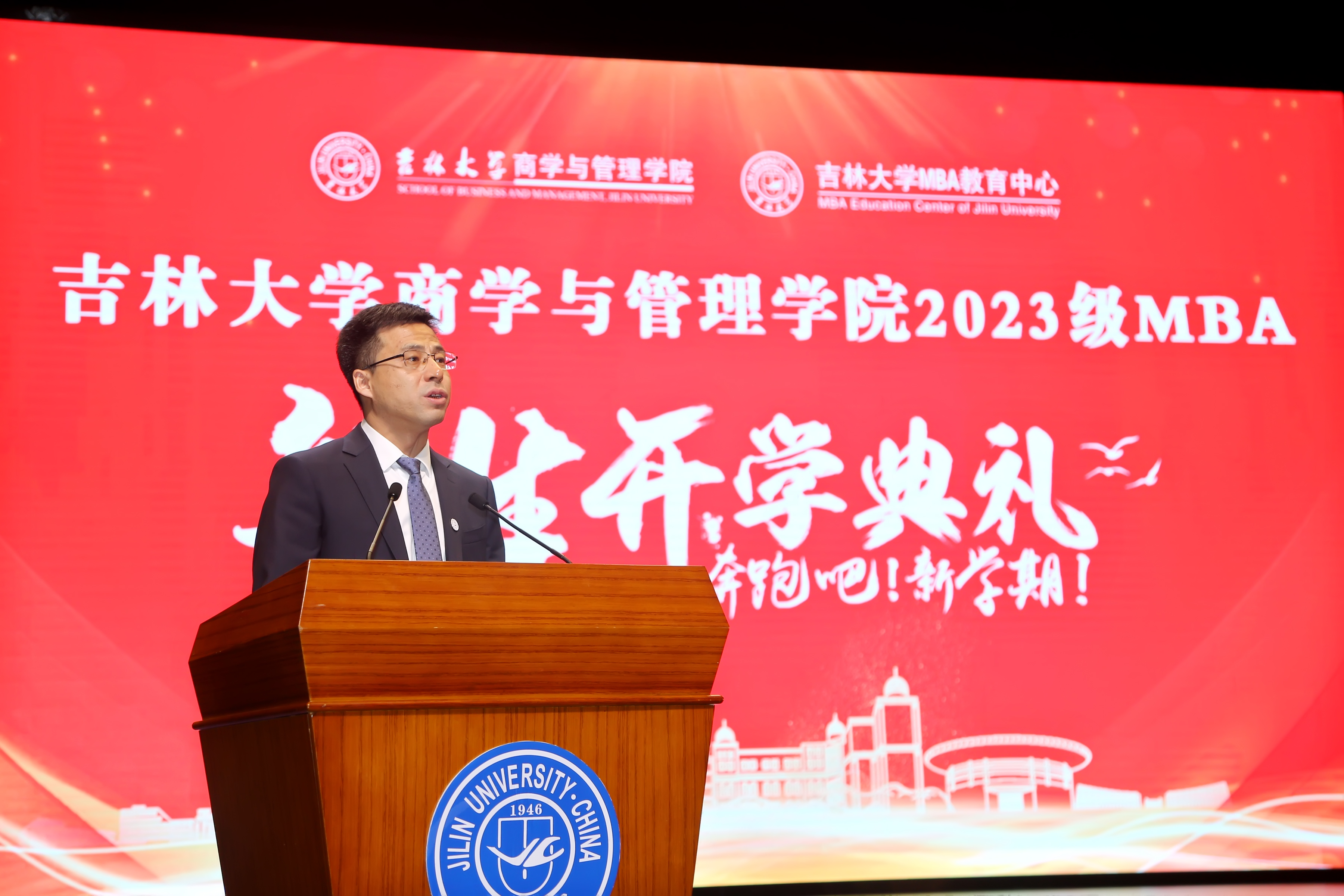 典礼在国歌声中拉开序幕。党委书记赵军教授为2023级MBA新生代表颁发校徽。伟德官网将从各位同学胸前的铭牌刻进每一个2023级MBA员工的心里,今日吉大为你高歌,明日吉大以你为荣!