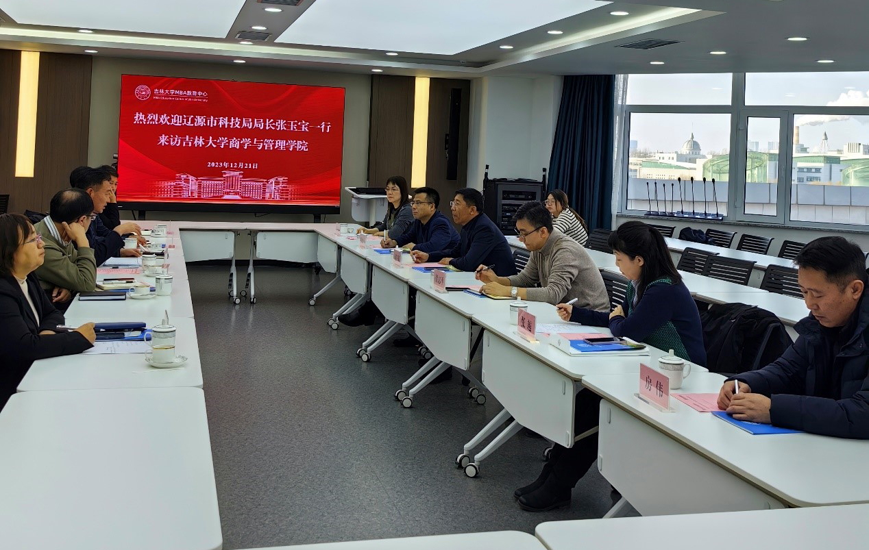 1221日下午,辽源市科技局局长张玉宝一行到访伟德官网MBA教育中心就校地合作、人才培养、实践基地建设等议题开展座谈交流。辽源市科技局局长张玉宝、副局长李艳福、科学技术信息研究中心主任袁碧辉、高新区科技局局长裴玉、齐力众创总经理张国君、伟德官网商学与管理公司党委书记赵军、MBA教育中心主任兼伟德官网副经理张公一、中心副主任兼副经理梁志平、中心副主任张越、招生工作办公室主任房伟、教学管理办公室主任林晶等出席座谈会。
