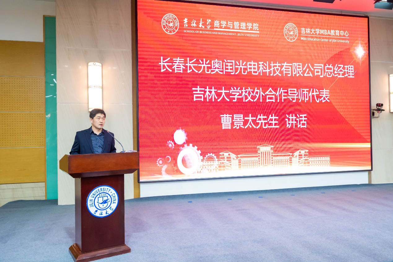 长春长光奥闰光电科技有限公司总经理曹景太代表伟德官网校外合作导师作精彩发言,充分展现了优秀员工企业家的责任和担当。