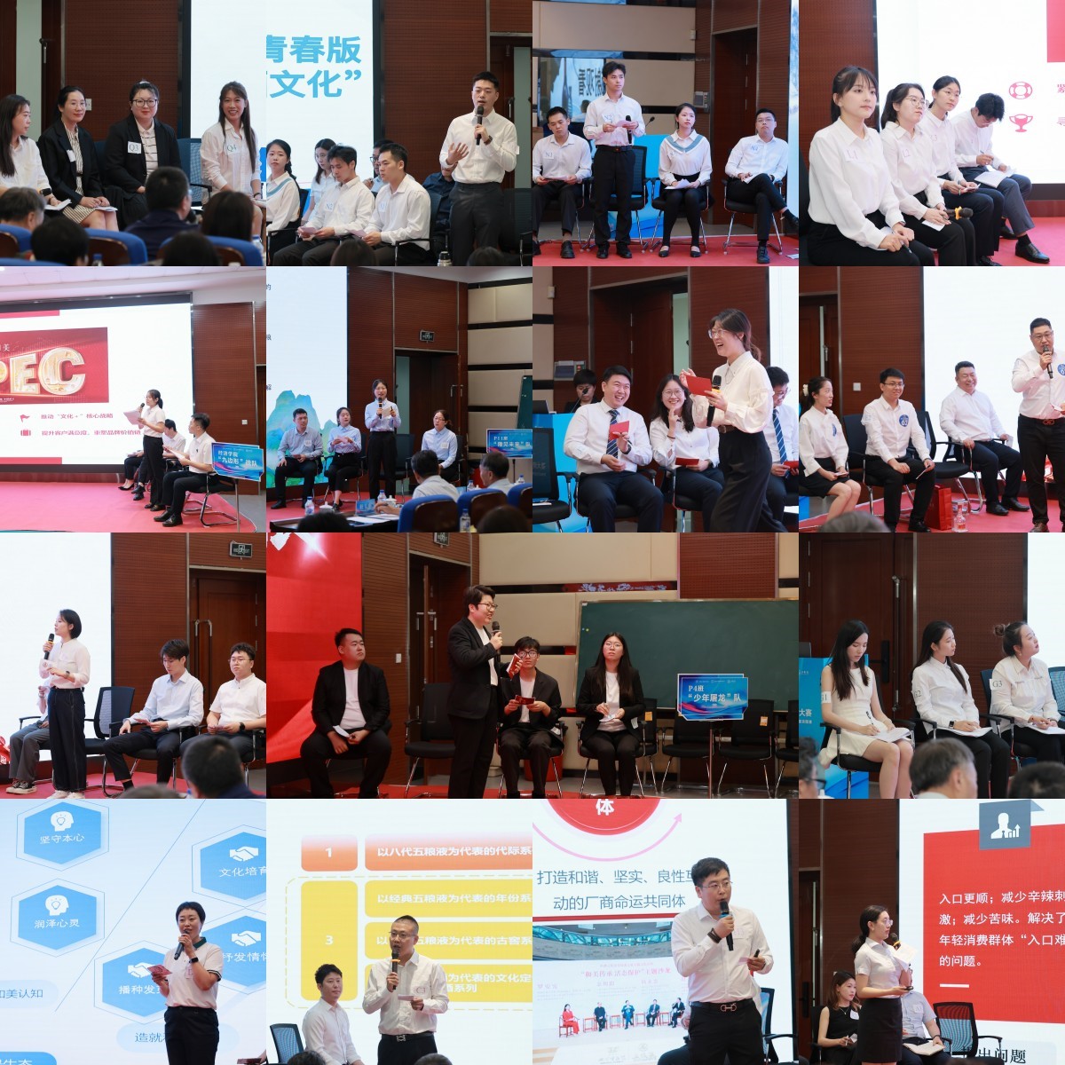 大赛分为赛前盲审和现场竞赛两个环节。现场竞赛环节采用大小PK制,15组队员围绕《破茧时代的断层:五粮液的品牌传承之路》案例展开头脑风暴,通过调研、搜集整理素材,解读和剖析五粮液品牌的代际断层困惑,运用CBBE、PESTEL、波特五力模型等方法,从行业趋势、企业定位、企业未来战略、品牌重塑等方面进行综合性分析,提出了切实的解决方案和可行性的战略规划。各组参赛队员各抒己见、侃侃而谈,在犀利的对手提问与独到的评委点评中体味管理思维的交流与碰撞。