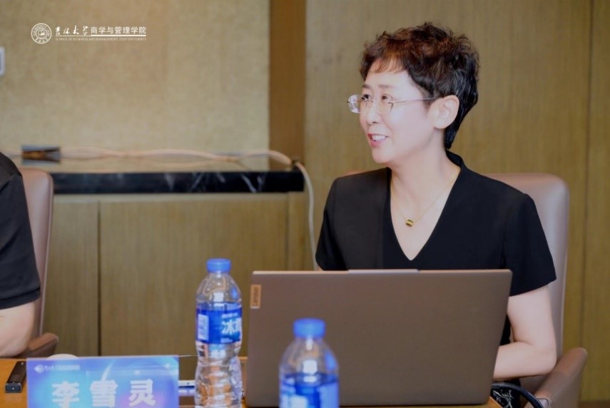 在研讨会上,李雪灵副经理汇报工商管理团队建设情况。李雪灵副经理首先对各位专家的莅临指导表示感谢,并从学科构成、建设历程、授权层次、研究方向、高层次人才、国际化成效、科研与教学成果、人才培养、社会服务等多个方面介绍工商管理学科的发展现状。随后,李雪灵副经理基于K6计划和专业数智化建设两个方面阐述了推动工商管理学科发展的现有举措。最后,李雪灵副经理从学科整体发展速度、学科交叉融合深度、学科方向发展、国字号人才梯队等方面总结了当前学科发展的不足。李雪灵副经理强调,希望通过这一研讨会的形式,在考虑工商管理学科面临的新挑战、新机遇、新模式的基础上,为公司工商管理学科的发展“把脉问诊”。