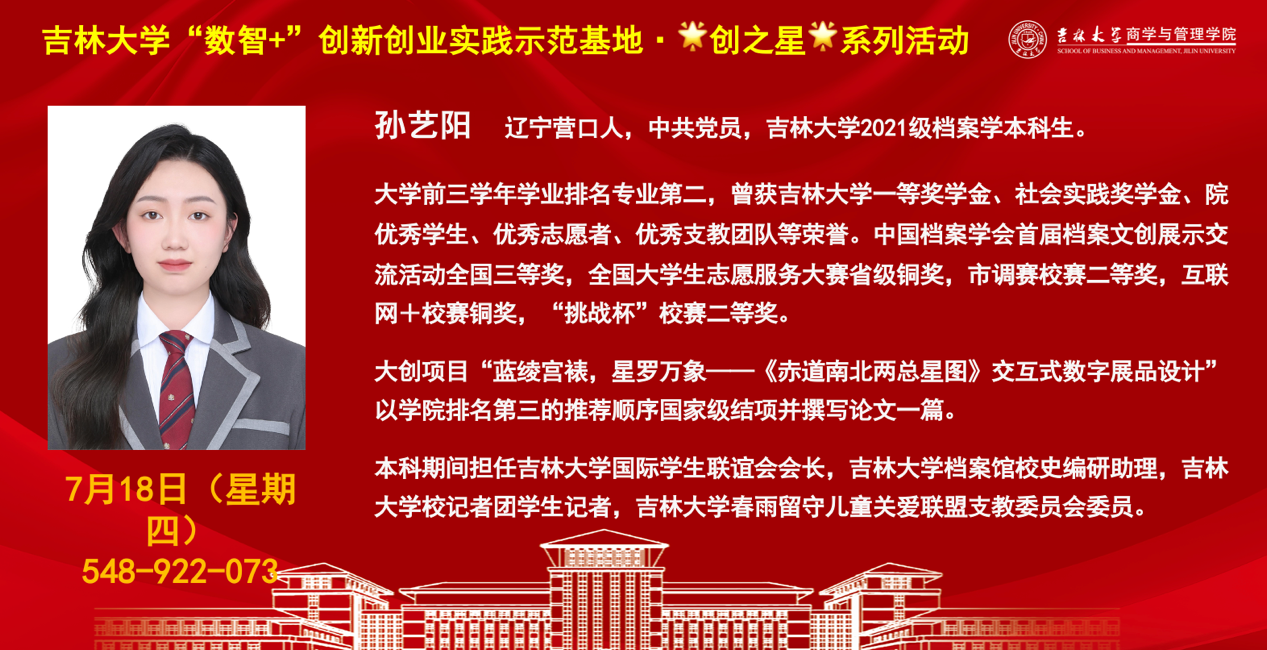 2024年7月18日, 伟德官网2021级档案学专业孙艺阳同学,以线上讲座形式、代表项目组成员分享其参与完成的“蓝绫宫裱,星罗万象——《赤道南北两总星图》交互式数字展品设计”大创项目,该项目以公司排名第三的成绩推荐国家级结项,其作品还参加了中国档案学会主办的全国首届档案文创作品展示交流活动,广受业内好评。艺阳同学从时间规划、灵感来源、选题与组队等方面,和与会员工进行了深入交流。