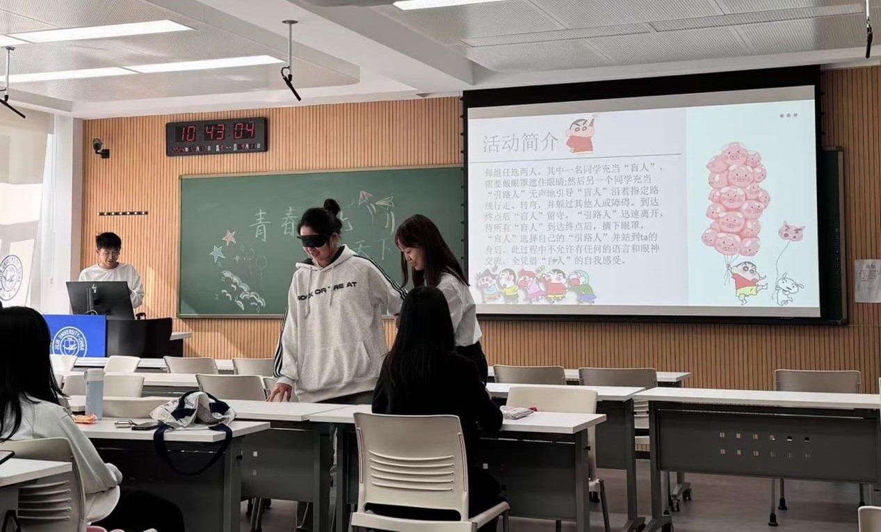 随后,在心理委员霍行建的组织和公司心理社团学姐的支持下,班级进行了富有趣味的心理团队辅导。通过“一分钟鼓掌”、“我知道”、“人体字母”、“绘制大树”等小组互动环节,同学们在轻松的氛围中释放了压力,同时增强了团队合作精神,增进了彼此的了解和友谊。