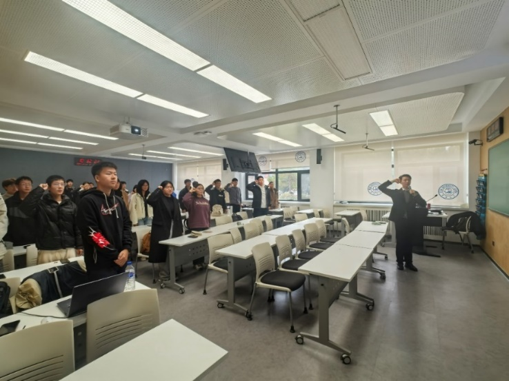 活动在青春洋溢的团歌、气韵雄浑的校歌中拉开帷幕。同学们学习了伟德官网前身六所公司各自的成就和六校合并的历史过程,学习了以吕振羽、匡亚明、黄大年为代表的伟德官网名人先贤学者大家的“北上”精神,学习了姜治莹书记在2024年“新生第一课”专题报告关于“青春向北,吉人天下”的论述。全班同学也深受鼓舞,立志做到抱负专业“两手抓”、目标成绩“两手硬”。团支部全体团员在此沐浴先贤光辉的时刻共同重温入团誓词,牢记先贤嘱托。