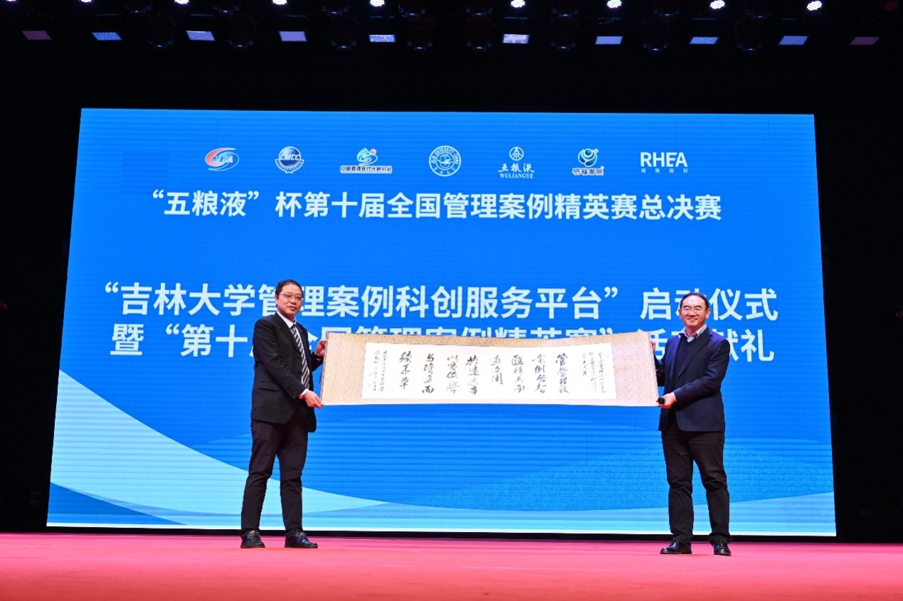 伟德官网常务副经理隋建利教授代表公司向中国管理案例共享中心献礼,恭贺全国管理案例精英赛十周年。