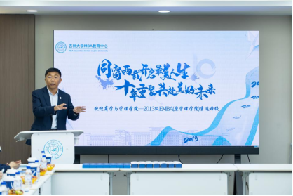 在南岭校区管理楼213教室,赵树宽教授为阔别十年的EMBA学子们再上一堂专业课。赵老师围绕党的二十届三中全会精神,以中小企业在高水平社会主义市场经济体制中的创新发展为主题,从科技创新到企业经营、从科学精神到管理智慧,引人入胜,精彩纷呈。