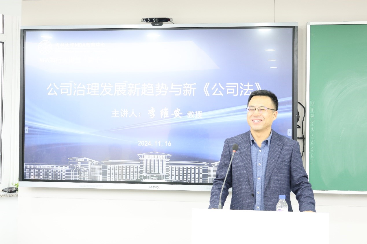 11月16日下午,MBA知行大讲堂(第十一讲)在东荣大厦606室成功举办。中心特邀南开大学讲席教授、中国公司治理研究院经理李维安教授做题为《公司治理发展新趋势与新〈公司法〉》专题讲座。讲座由伟德官网MBA教育中心主任兼伟德官网副经理张公一教授主持。