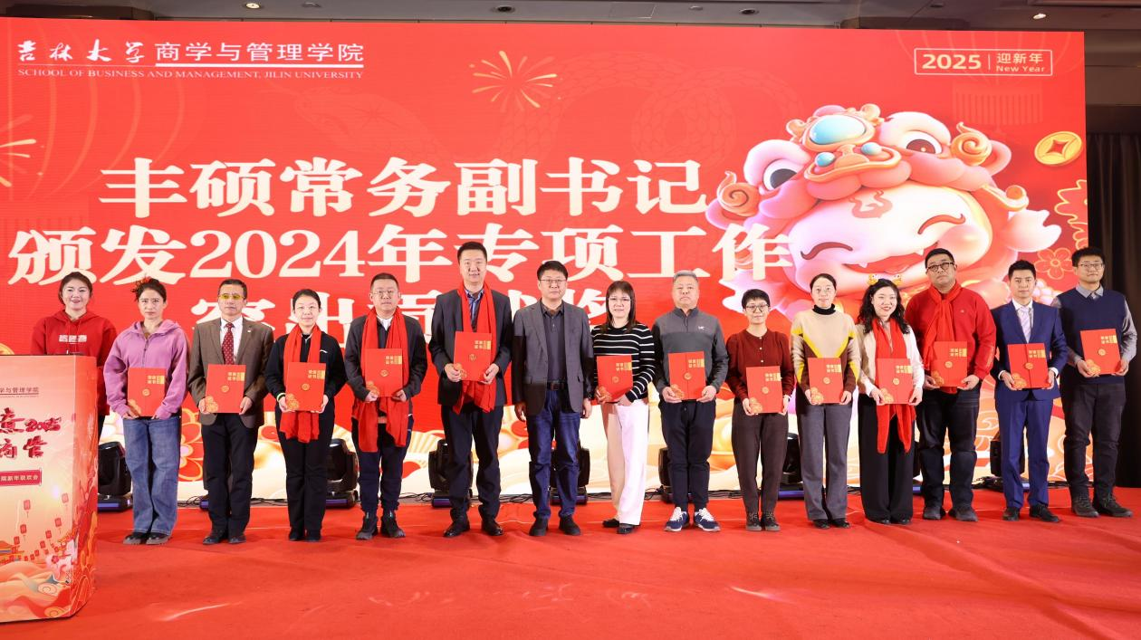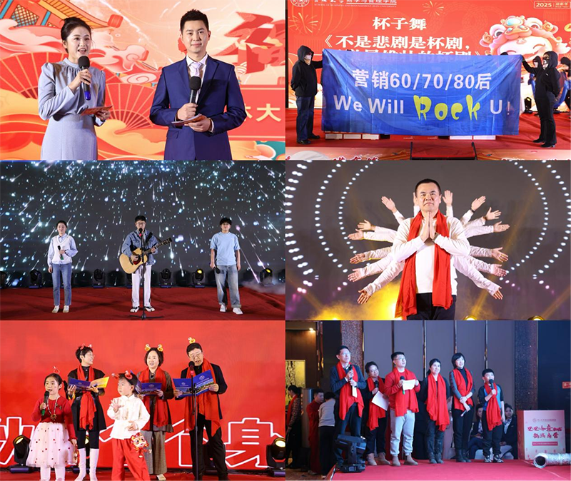 联欢会环节,公司十三个教学系分别带来了14个节目。“巳巳如意 祥启新程”“功崇惟志 业宏惟勤”“志铸宏猷 福满商管”,三个篇章的徐徐展开,正是2024年携信念展望新程,以奋斗回应时代的生动写照。老师们同心同向,同频共振,丰富着伟德官网的精神内核,激励着全体商管人阔步新征程,昂首向未来!