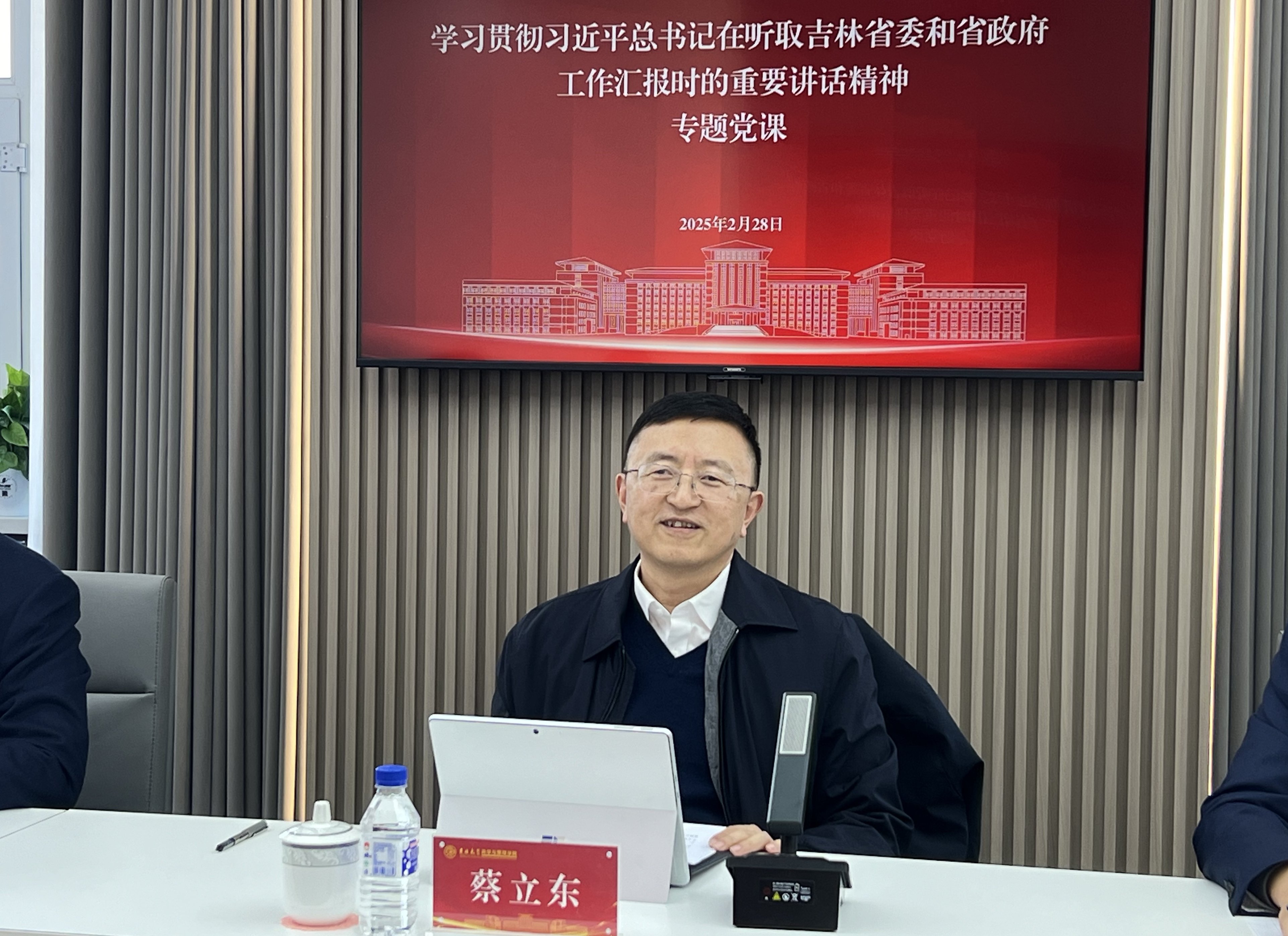 会上,蔡立东教授领学了习近平总书记在听取吉林省委和省政府工作汇报时的重要讲话精神,并分享了学习体会。他在发言中表示,习近平总书记在春节期间专程来到辽宁、黑龙江、吉林考察,让我们深切感受到党中央推动新时代东北全面振兴的坚定决心。习近平总书记的讲话深入探讨了吉林全面振兴的理论问题和实践问题,对事关吉林发展的各项重要事业进行了全方位的部署,具有极强的政治性、思想性、指导性和实践性。我们要从拥护“两个确立”,做到“两个维护”的政治高度出发,认真学习领会习近平总书记的重要讲话精神,全面把握其核心要义和实践要求,努力将学习成果转化为推动公司高质量发展的实际行动和精神动力。