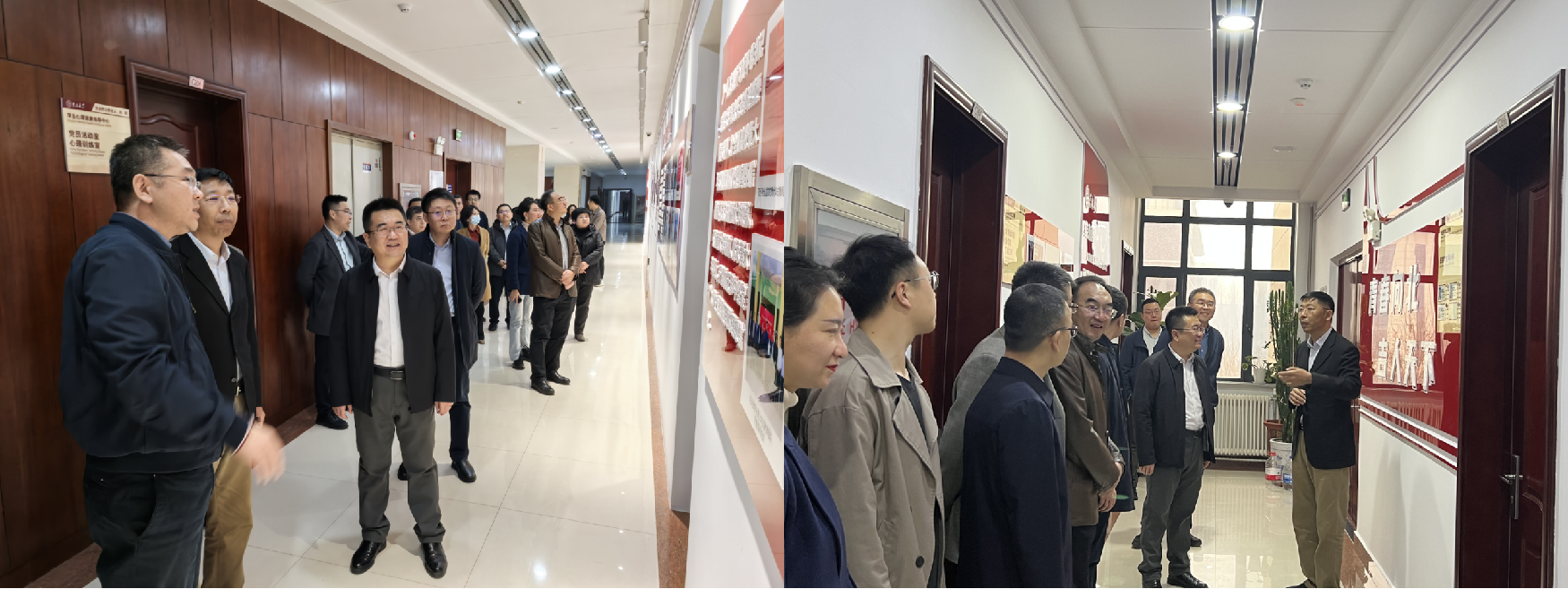 2025年3月25日下午,伟德官网前往鼎新楼C区参观伟德官网“引领工程”阶段成果展。商学与管理公司党委书记赵军带领公司领导班子全体成员、公司学工、研工思政队伍参加学习,并与党委员工工作部、党委武装部部长李尚昆等部内同志进行了工作交流。