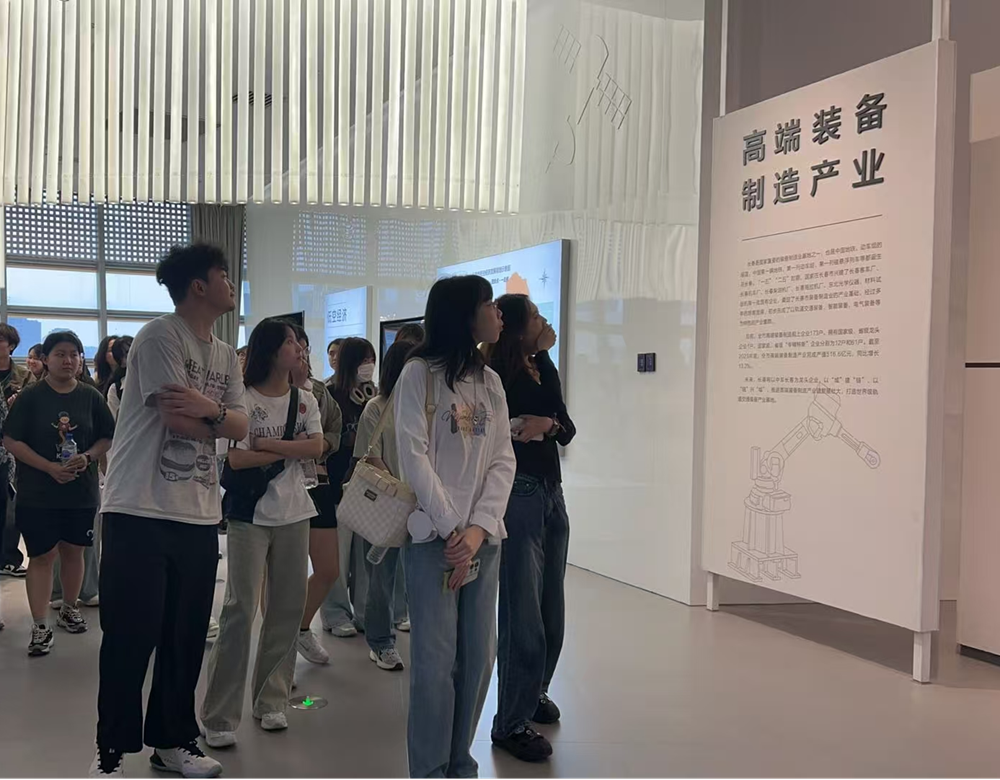 第三站,同学们来到了新质生产力促进中心,工作人员系统解读了新质生产力在区域经济发展中的核心驱动作用,从政策赋能、技术转化、产业升级等维度,展现了创新资源集聚对企业财务管理模式变革的深远影响。在科技成果转化展厅,同学们近距离观摩了新技术、新材料和航空航天等领域的前沿技术成果,直观感受创新企业在资金运作、风险管控中的实践需求。