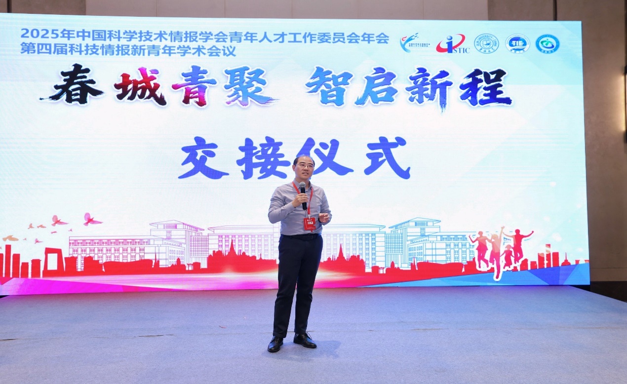 最后,会议举行交接仪式。中国科学技术情报学会青年人才工作委员会主任刘志辉研究员将2026年会议主办权移交武汉大学信息管理公司,武汉大学举办方代表程齐凯副教授向全场嘉宾发出热情邀约,表示武汉大学将精心策划,力争将明年的盛会打造成开放、前沿、高效的学术交流盛会,欢迎大家明年相约武汉,共襄学术盛举。